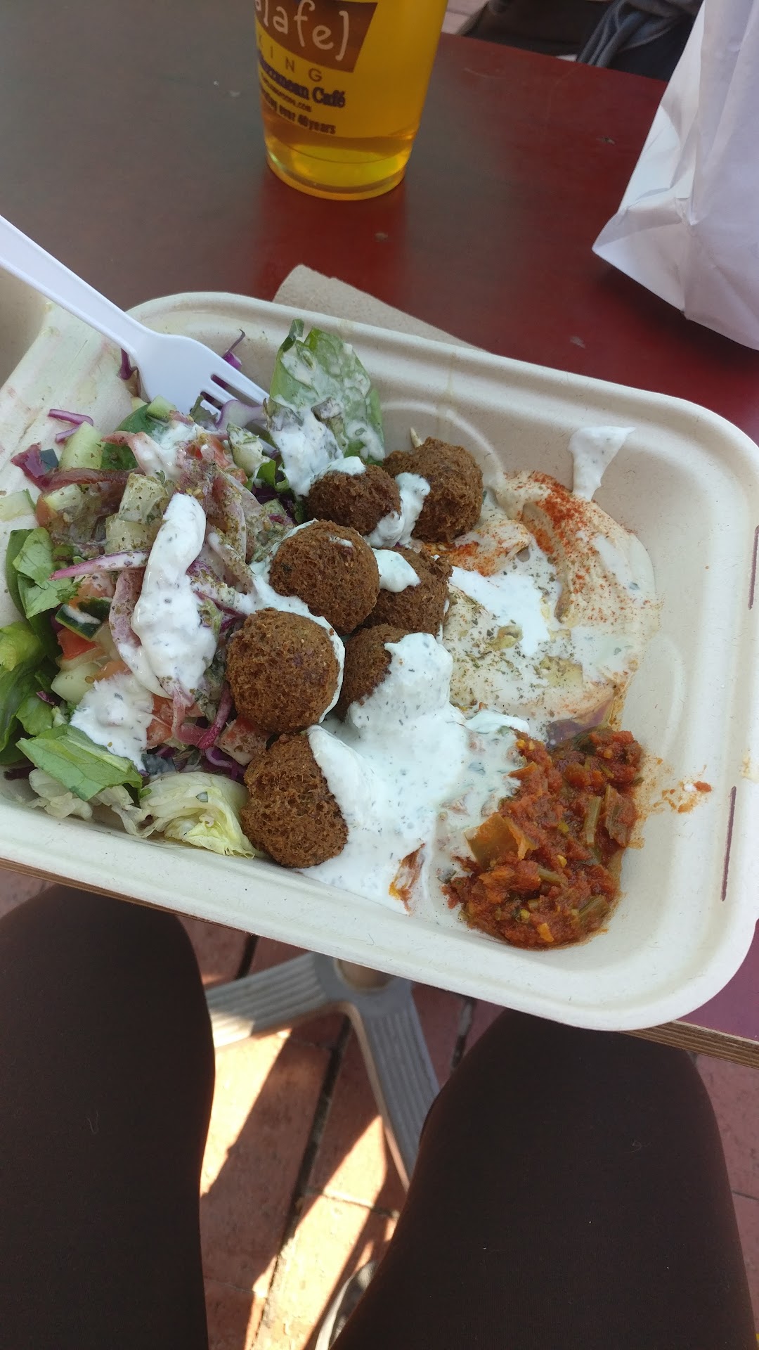 I figured 4.3 stars can't be all that bad. Boy was i wrong! I didn't want to spend too much on dinner, as I was working in the area, so I was just looking for a quick and simple meal. Lets start with the fact that this place touts its "authentic" Mediterranean cuisine. Its about as authentic as going to Taco Bell for Mexican food. At least Taco Hell charges what the food is worth. Yes Falafal King was charging exhorbitant prices for what amounted to food that was worse than Taco Bell!! I had the lamb and gyro meat plate which consisted of a falafal, dolmadas, salad, hummus, pita and rice plus the meats. Lets start with the falafal, they were as small and hard as marbles which means i could have knelt down on the floor and starting using them as marbles. The salad was a sorry excuse for a salad, let alone a Mediterranean salad....it was essentially lettuce and onions with olive oil and a few sprinkles of what I assume was supposed to be feta...no tomatoes, no herbs and definitely no flavor, unless you like the taste of an olive oil spill on your tongue. Hummus was so bland it could have been a substitute for miracle whip. The pita was dry and crunchy! Since when do pitas come in crunchy flavor? This aint aupposes to be Doritos. I finally tried the unappetizing looking lamb meat and the experience was worse than eating that meat in the school cafeteria, except that the cafeteria meat was at least soft and not crunchy....meat should not be crunchy! Then I tried the Gyro meat which was yet another dry jerky imitation which quite possibly may have been a long lost WWII era MRE. Maybe I was supposed to add water, but i didn't get instructions on the plate. At this point I figured ive already spent a small fortune, so I tried the rice.....and as expected, it was crunchy. Suffice to say, that although they never gave me the dolmadas that were supposes to be included with my meal, I decided it was best to cut my losses and run as for and fast away from this establishment. For those who might be saying to themselves that I just don't understand how Mediterranean food should taste, lets just say, a decade of living in Greece, Italy, and Spain, plus trips to Turkey, Crete and Cyprus should qualify my pallete to at least know when a food shouldn't be "crunchy". But if you think taco Bell is great mexican food or Olive Garden is great italian food, then by all means, feel free to go to Falafal King for "authentic"...
