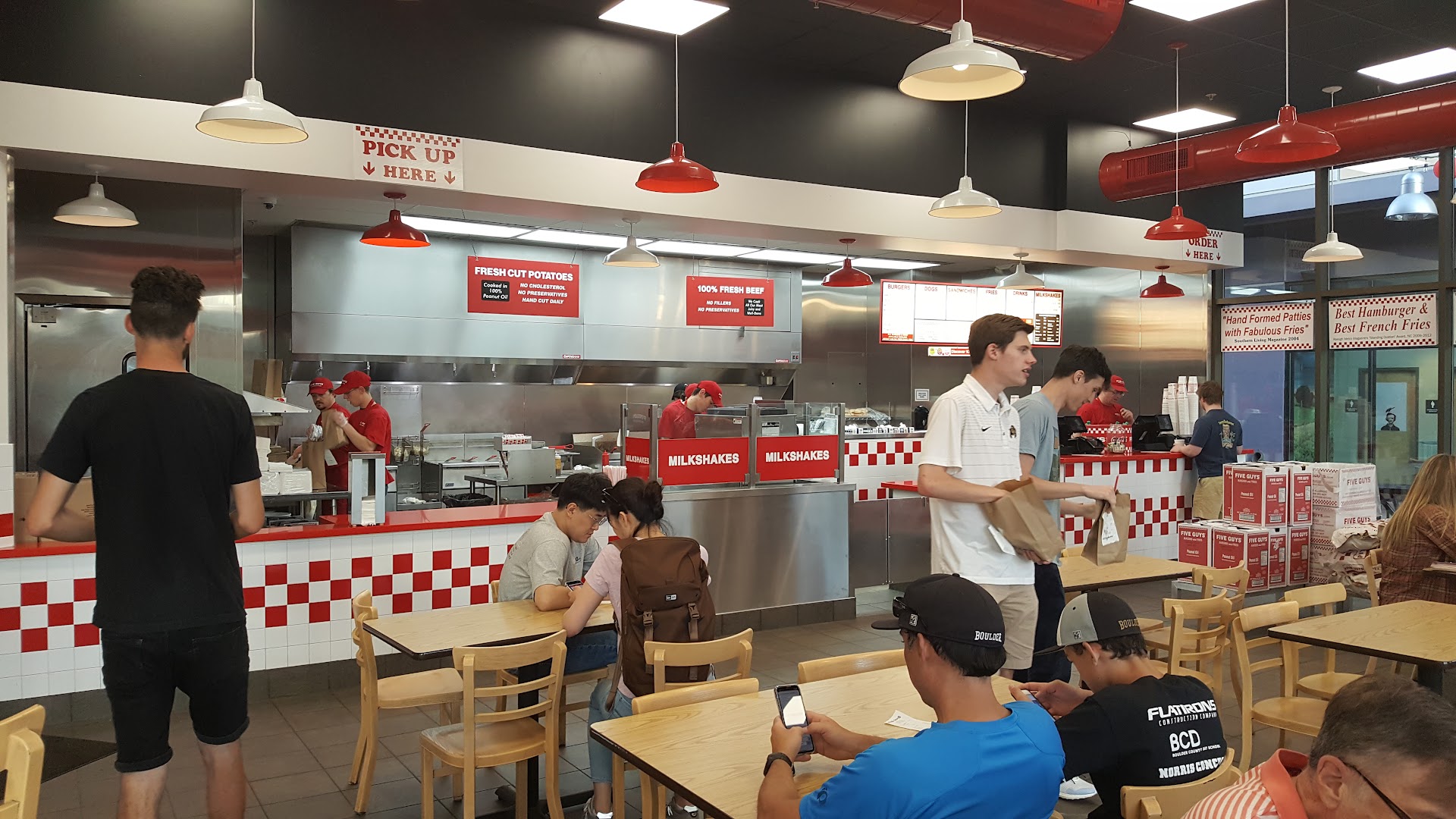 The guys here were very friendly. I ordered a regular hamburger and the regular fries. Thereās malt vinegar off to the side for the condiments. My burger was made medium and was still juicy. The restaurant was kept tidy. Just felt bad for them, right after they wiped everything down, a lazy individual was getting ketchup and didnāt bother placing the cup properly underneath the spout. She kept pushing the handle down and 1/4 of the ketchup made it into the cup and the other 3/4 on to the counter. She continued doing this until the cup was full. Didnāt bother to clean her mess up and one of the Five Guys employee came over to clean it up immediately (with no anger).