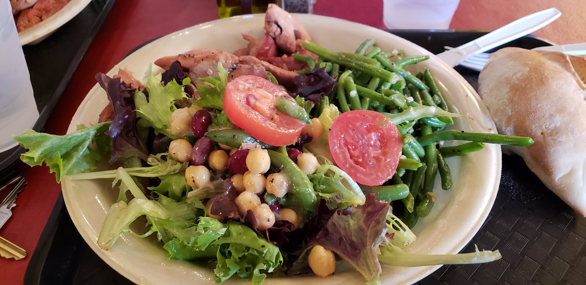 Read moreFirst time visitors. The reviews brought us in. I had looked at this website years prior and saw tables in a dining room along with a photo of Frankie Avalon. I had wished to try this place several times but they are not open on weekends. We visited in January 2019 and the seating was all high-tops. There's no table service; you walk up to the food in the case and choose what you want. The staff is very friendly but they run through the food items so quickly, it's hard to understand. Couple that with other people waiting behind you and it's a rushed experience for lunch. The tables are small when there's 3 or 4 of you and everyone is saying excuse me as they try to maneuver around one another. It was busy at lunch. The reason I wouldn't return is the fact that garlic is in everything and in great quantities. I had the chicken with green beans, salad, and a homemade roll and all I could taste was garlic. The chicken was moist and cooked to perfection as were the green beans. The salad was excellent but again, I didn't come in for the garlic. The roll, although applauded for being homemade, had not flavor. Oil and vinegar was provided on the table but no butter for roll. Where would you place the oil and vinegar if you wanted to dip your roll into it? They pile your lunch on one plate and there's no room for anything else nor a separate dish...