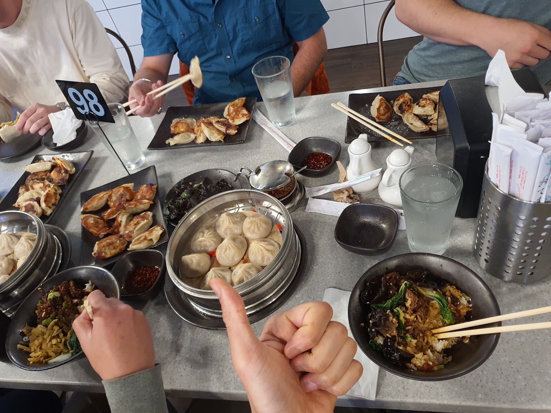 Needed lunch as this was maybe a 10min walk from my office went to get takeout. Tables at lunchtime were full and the pan fried dumplings looked delicious and very popular. I tried the steamed fish and cabbage dumplings which the server said were underrated and the stewed angus beef over rice. The steam fish dumplings were ok but underwhelming as the flavors were very mild and I doused them in chili oil to give it some kick. Plus getting them steamed which is how they come, it may have been beyyer to eat on site because by the time I got back to my office, the skins were hardened and thick for eating. The beef bowl was a bit on the fatty side and had some chopped up broccoli not the bok choy advertised and expected. It also had a huge skin on chunk of ginger that may have been nice minced or sliced but not a solid 1.5" piece of it. Service was great, they placed chopsticks, soy sauce, chili sauce and napkins to go. The food, well there are definitely menu items I'd still like to try that may be better flavorwise, like the soup dumplings, the bao buns and pan fried dumplings. *UPDATE- went back with hubby for dinner. Ordered book choices which was good and the crab soup dumplings which were delicious, both arrived in a reasonable amount of time. Our chicken Pam fried dumplings didn't show up and after everyone else who arrived after us got their food, we finally had to flag down a server and ask about them as it had been close to 20min between finishing our soup dumplings. They said that they had burned our first batch so had to make a new one. The only woman working there offered us a free appetizer as an apology so we asked for the scallion pancakes. The pan fried dumplings finally arrived and half were burnt on at least half or all of them on one side with the other side looking a bit underdone. At least one dumpling had a 1 inch piece of charred skin stuck to the side that my husband scraped off with his pocket knife and he said at least half his dumplings tasted burned. If I were the restaurant I wouldn't have served them looking like that. We asked for the scallion pancakes to go so have not eaten them . Sadly disappointed in our experience when you were able to see the kitchen staff shooting the sh and at least one on their headphone or phones when customers were waiting and only the woman appeared to be clearing any dishes. Not sure I would want to go back for dinner as the lunchtime plates when I first went to get take out looked far...