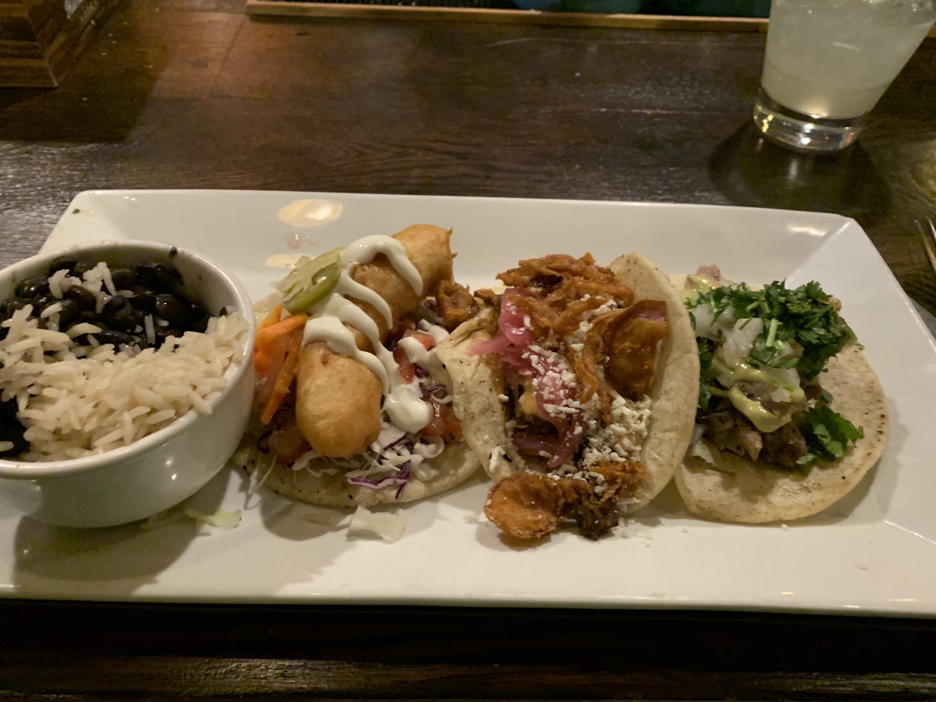 Read moreI was really excited to try this place as I love tacos. I've had tacos from a ton of different restaurants/food trucks in the Boulder/Denver area and this one came up kind of middle of the road for me. The tequila selection looked good and I liked that they use Lunazul for their cheaper cocktails. My paloma was on point. The mezcal selection looks great! Probably the best mezcal selection in Boulder right now. The tacos were pretty good, I had three different kinds and they were all tasty. However, they did not double layer the tortillas on any of the tacos like a lot of mexican/street taco places do so as a result the more moist/liquid tacos broke through the corn tortilla pretty easy. Lastly, the service was off-putting. We had at least 4 or 5 servers/bussers hovering around our 2 top table constantly asking us if we were good, one of whom called my dad, "buddy" who is probably at least 30 years his senior, so that was weird but may just be a personal pet peeve of mine. Our server also only asked one of us if we wanted a drink and then ran off before asking the other person. My review would be 4 stars if it weren't for the service. I plan to come back and try again a few months from now. But for now, I prefer other taco...
