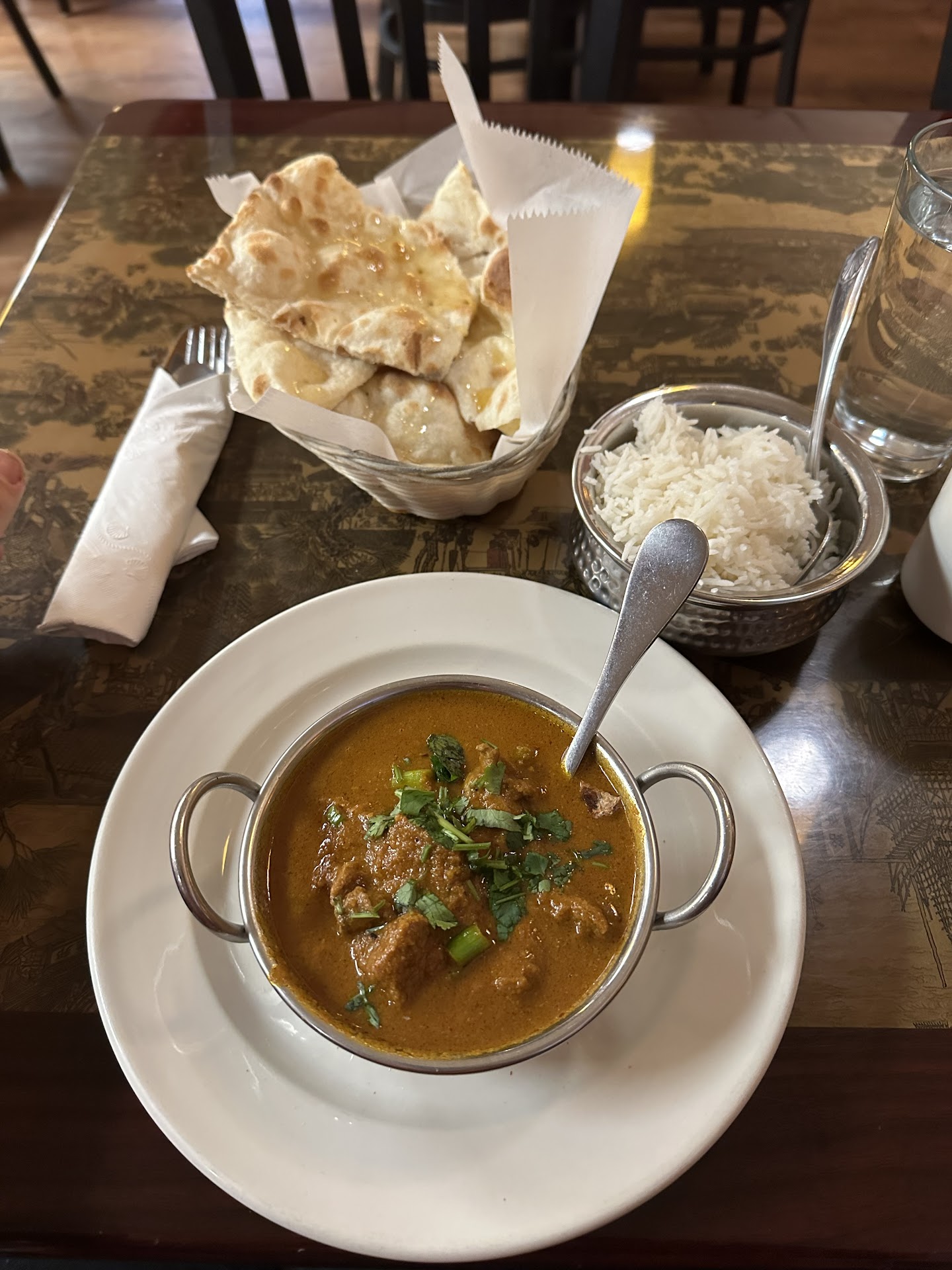 Read morewoah talk about a hidden gem! spice level rated 1-7 no need to fear! last night I ordered the curry and J am munching on the left overs as I write this for a low cost you get a belly full of naan with multiple options for flavor and topping I tried honey only complaint is sticky hands maybe a dipping sided instead of drizzled on top coming as a consumer not a a chef taste is great loads of bubbles better than a Neapolitan pizza crust!! rice cooked to perfection lamb was juicy tender and loaded with flavor I also tried Chai for the first time which helped curb the spicy I ordered level 5 a little too much for me next time ill do a 4 but hot chai made it all better for me! great customer service and comfy vibes I look forward...