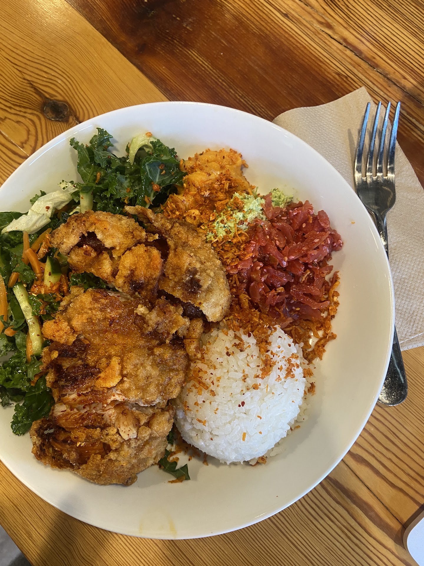 They have delicious snacks (rice cakes and pastries) that are freshly made and the most AMAZING bowls. Each ingredient in their 'scratch bowl' is super fresh and has perfectly balanced flavors and textures. You can add protein and interestingly, whilst chicken is personally my least favorite meat (often too dry), their fried chicken is absolutely my favorite, ridiculously crunchy with super tender meat inside.