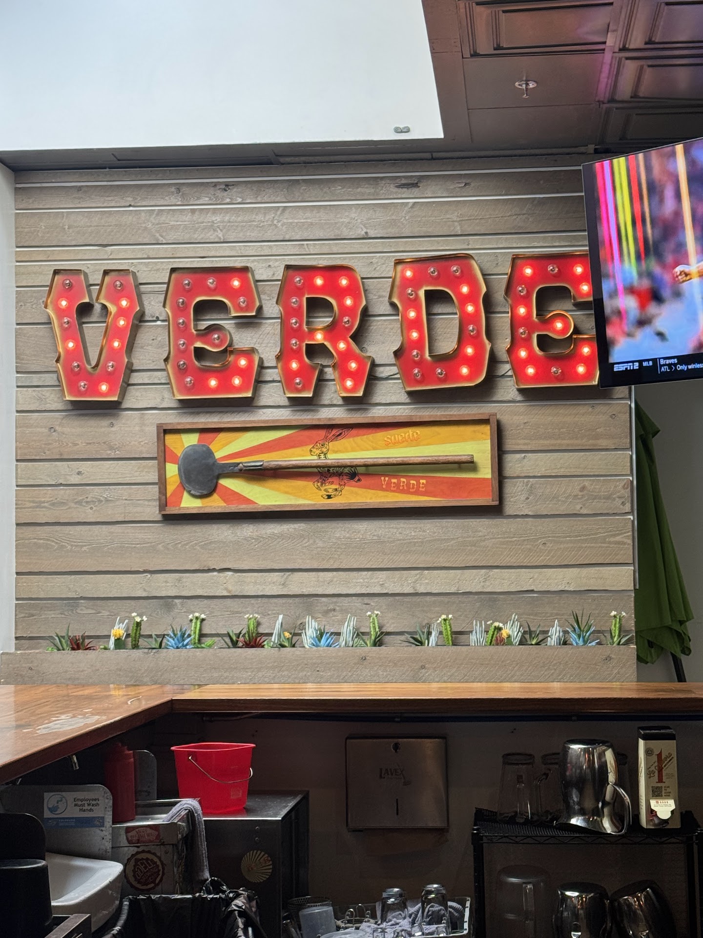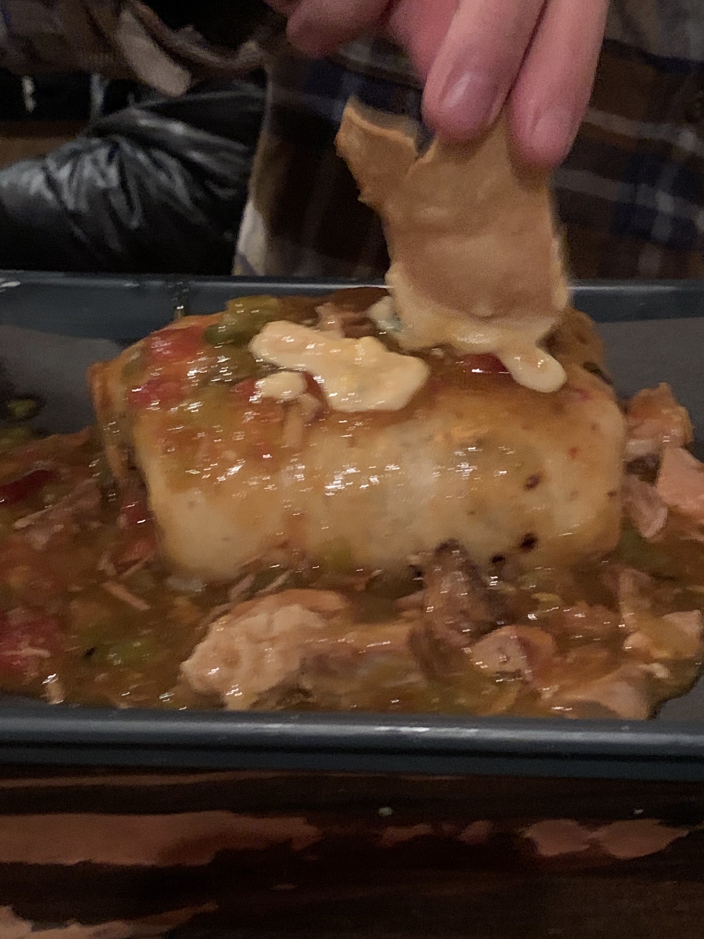 We each ordered a margarita, mine coin and his spicy. He was sad his wasn’t spicy and mine was bland compared to others I’ve had at nearby spots. We dove into the delicious queso and warm chips. Highlight of the visit.