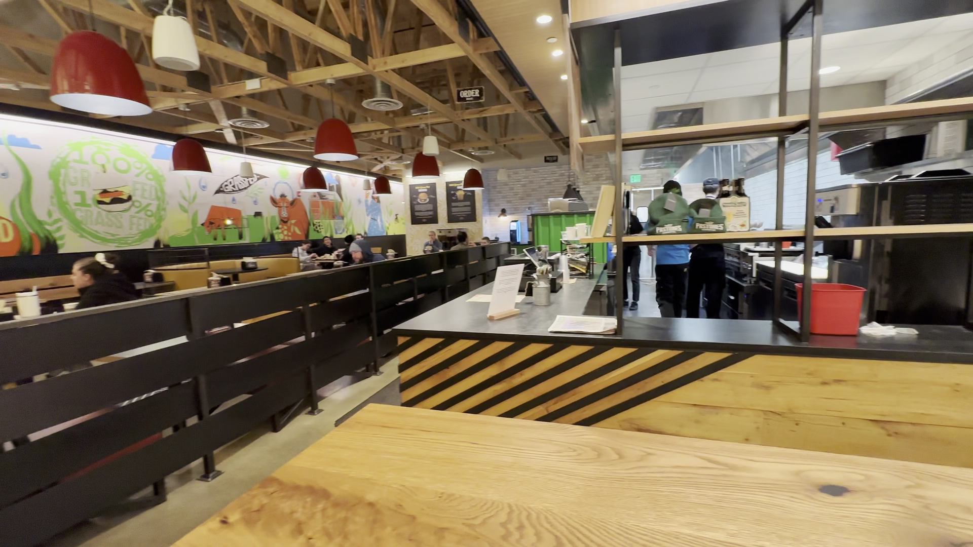 1.Ordered the double grass fed burger with no cheese but with all of the veggies.The burger itself was average for a burger really no real flavor to the meat itself Yes probably more healthier then other ground beef but who really knows cause ground beef is just basically the scraps of other cuts of beef mixed into one batch and grounded up! (Not impressed) I can do without! Nothing with a wow factor where I would go out of my way to dine here! $12.99 for the burger itself kinda expensive for ground beef meat
