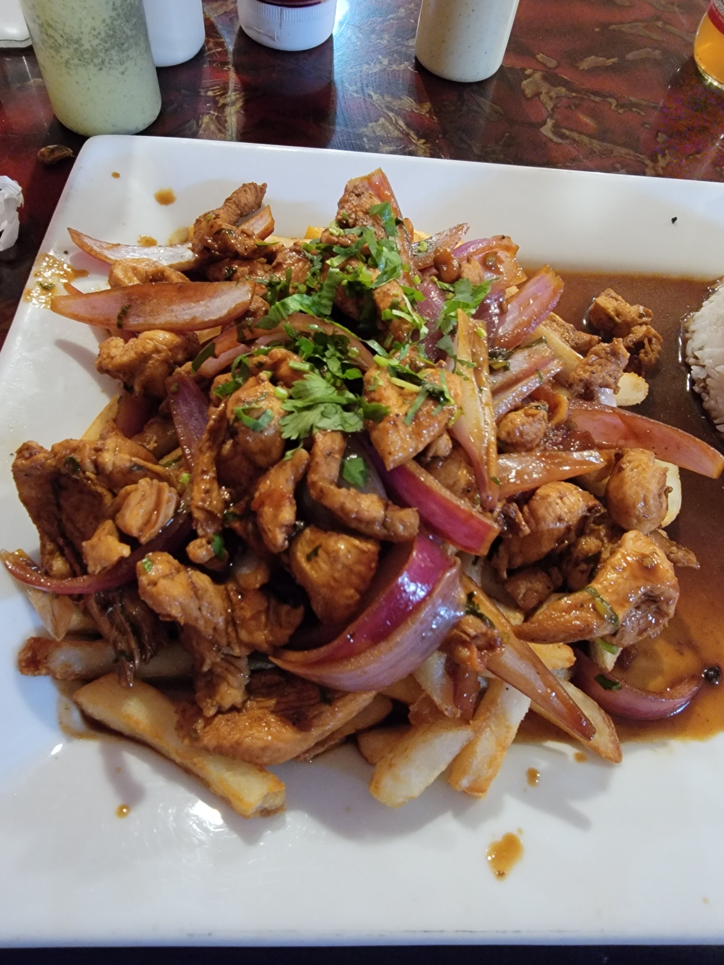 Over the years, this location has changed owners multiple times and my husband and I have tried all of them. I can honestly say that the current owners are doing a fantastic job. The food is delicious, green aji is delicious, the service is great and staff is friendly and nice. The restaurant is small but spacious, and they do a great job keeping it well kept and clean. For the holidays, they currently have nice decorations and they always play good Spanish music. Prices are reasonable for the big quantity of food they serve. I prefer eating at the restaurant over taking food home. They usually also have baked dessert too, chantilly is my favorite here. I highly recommend this restaurant and hope that those around give it a try so the restaurant and current owners can last for years here! Attaching a picture of our pollo saltado which is so good and...