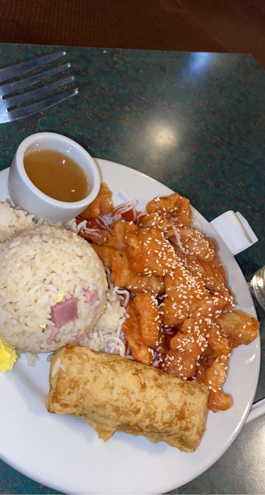 I got the lunch special pork chow mein, which was 7-8 dollars. Also two cheese wontons (small additional $) and egg drop soup. Decent amount of food for the price. And I suppose the quality of the food matches the price.