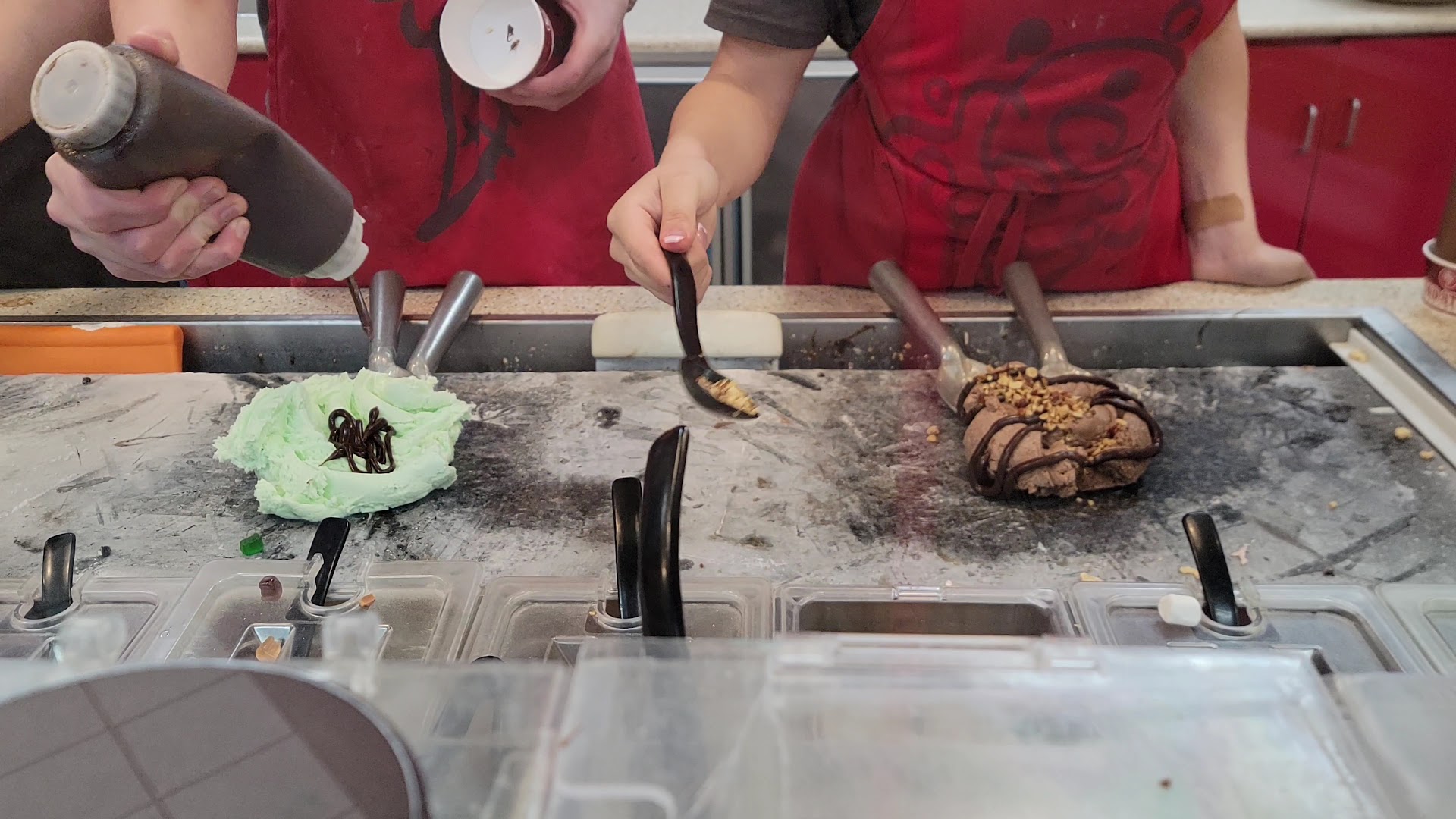 Read moreOn this visit we went in so we could try one of the pie/ice cream/cakes. And we were finally using some gift cards that we had received as Christmas presents. Which was a quick smooth transaction. No hassles. Most of the staff was young and friendly. It is always pretty busy whenever I've gone in. So don't plan on just stopping in. At least a 15-minute wait every time you go. But not this time. This time we were able to get out in about 10 minutes. And that was only because the people that were in line to get ice cream we're very protective of their spot in line. There isn't a separate line or even a walkway to get to the freezers that hold the ice cream cakes and pies. So we had to wait in line until we reached the freezer. Then we just had to deal with a couple of sideways glances as we made our way back down the line to get to the cash register. A little more room would be nice. or maybe a sign with some instructions letting you know what to do if you're just trying to get a pie or ice cream cake. I have to say the salted caramel pie was delicious and it did serve 8 pieces for the $15 price tag. All in all fairly satisfied with this visit. The Establishment did look like it could use a good mopping it was a little more out of sorts than it normally is. And there were no tables available so it was a good thing we were going to...