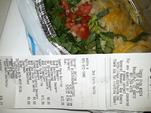 Ā Ā Ā Read morePlaced an order through the Costa Vida app for the Bountiful location for a 2 taco meal. I requested no beans, no pico, no lettuce, no cheese. My husband asked before leaving with the food why there is no rice and was told rice wasn't ordered. Then we noticed there was cheese on the tacos. I returned to the store with my order. They completely ignore the fact that there is cheese is on the tacos although the order clearly states 'NO cheese'. They stand by the claim that rice was not ordered. I try to explain that the app only asks if you don't want these items. It is assumed everyone gets rice unless it says no rice. The manager then points out that the order says no beans. Not really sure what no beans has to do with no rice but it was clear nothing was going to be resolved, so I requested a refund. The manager tells me I will need to contact corporate for a refund. Never located a phone number for corporate but did find an online reporting feature. Hopefully someone will be in touch soon. This is not the first time I've had issues with the Bountiful location but it's the first time I couldn't get it resolved with the manager. I will never visit the Bountiful...