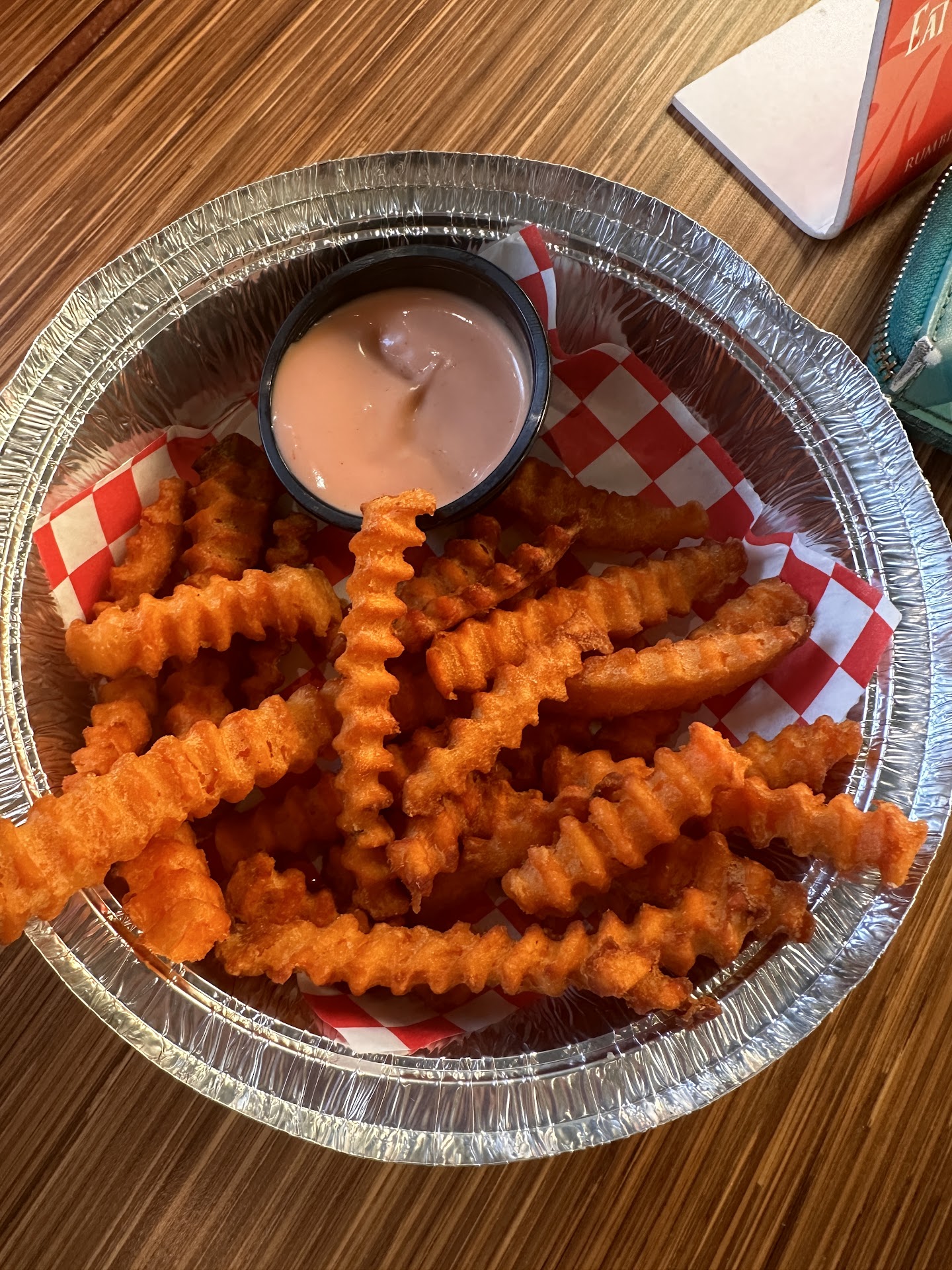 I always love their sweet potato fries. We also love their chocolate lava cakes. Each of our dishes was good and Iāll highlight them below, but I got the chicken and shrimp, and it was amazing.
