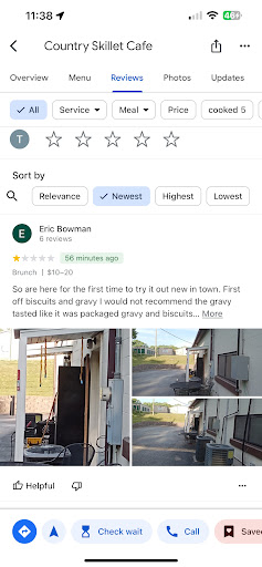 Read morePlease disregard this NASTY REVIEW OF MY RESTAURANT!! This person is an employee from a neighboring business that obviously has a problem with me and has decided to SLANDER my business with FALSE ACCUSATIONS !! Please read all of the reviews of my restaurant from other customers and you will clearly see that 99.9% of them have been overly satisfied with their visit to my restaurant! I personally invite YOU to visit the COUNTRY SKILLET CAFE in BOURBON, MO and tour my kitchen and see for yourself how CLEAN it truly is!! As for the fly strips, at least I’m trying to keep them from getting inside my restaurant! Pest control visits my restaurant EVERY 4 WEEKS!! I know the TRUTH and I’m confident that people that have visited my restaurant will clearly see that this is just an ATTACK ON MY BUSINESS and SO PETTY!! I would APPRECIATE it very much if you do visit my restaurant, to please leave an honest review! “Thank You” for your support! I APPRECIATE YOU and YOUR...