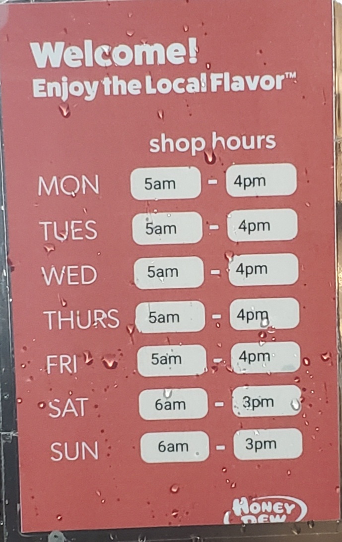 Read moreI go here quite a bit the people working are always nice,I generally use the drive thru. I have never had a problem with the food.The owner is a very nice. This location is run and owned by a local family and they hire neighborhood kids and adults to work here and support the local sports teams. This is not a corporate store. Be advised. The men's bathroom that is maintained by the Shell gas station at the same location is filthy, please don't let this affect your opinion about Honeydew it's out of...