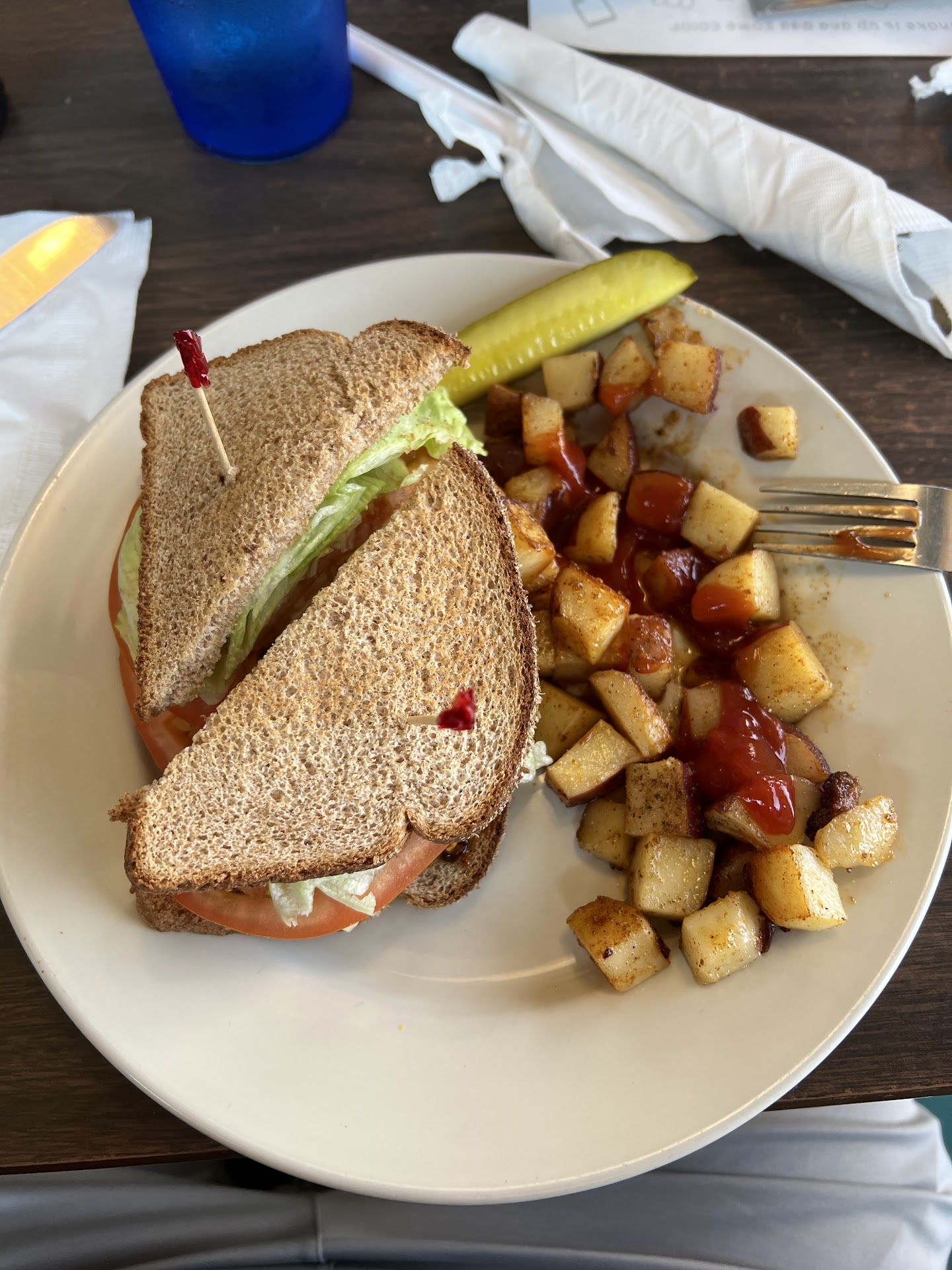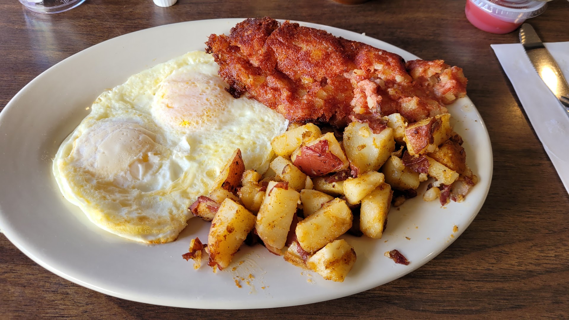 Read more1 star because couldn't put 0. Waitress took over 15 mins to come to take our order, practically ignored us the whole time we were there constantly walking right by us to chit chat with coworkers or go to other tables. Table next to us WALKED IN 10 kins after we ORDERED and got their food at the same time as us. Plate was hot food was Lukewarm so I know it say undera warmer or something. Corned beef hash was wicked salty and was mushy as heck like baby food. I don't understand why it took 40 minutes for the food all I ordered was a toast egg sausage breakfast sandwich. It was just ridiculous. Like yes it was busy but people were getting their food in all different orders than the order they came. I was actually afraid to ask for an ice water because of how long it might take for her...