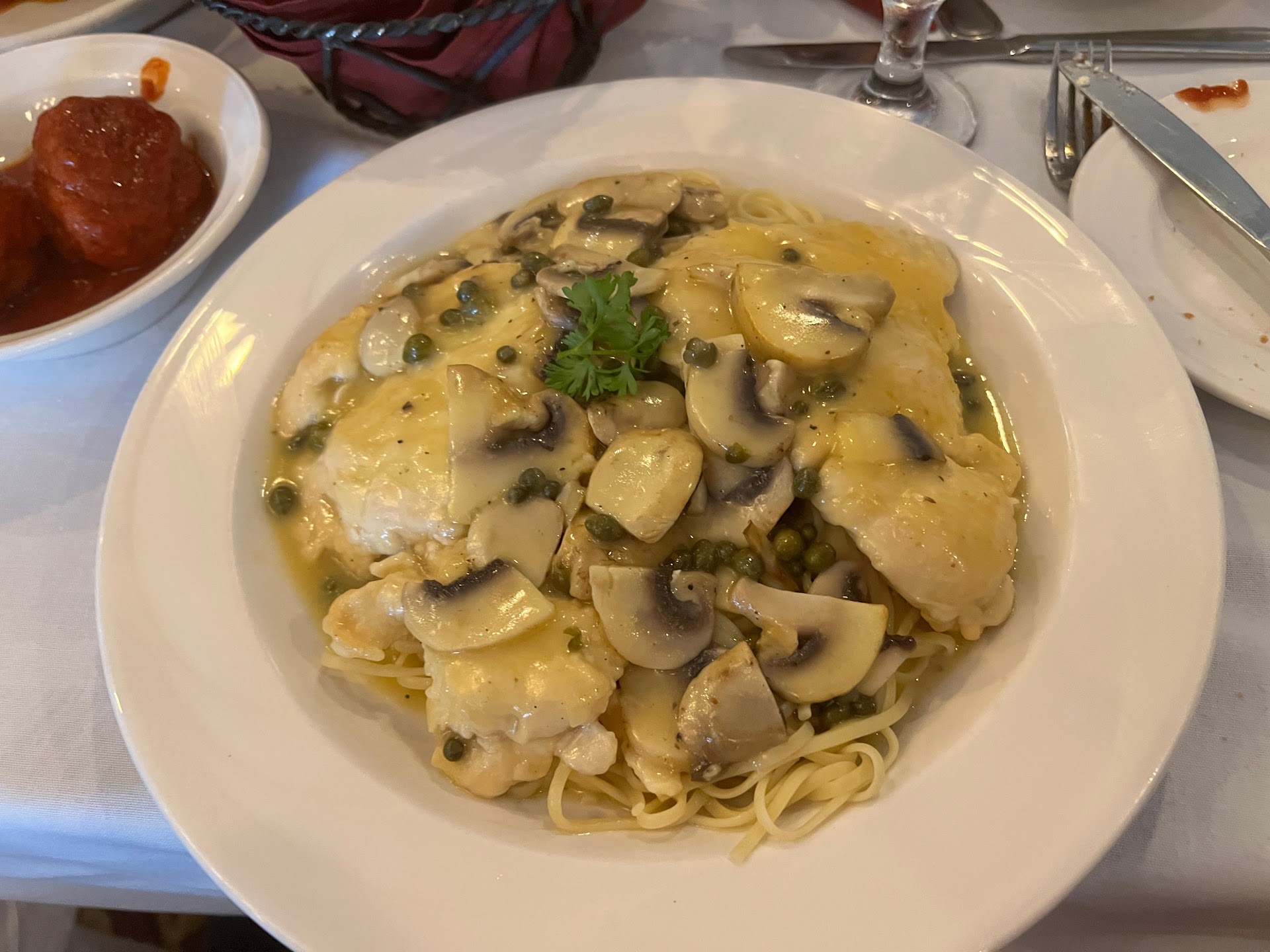 I got Chicken Piccata and I could not believe the portions! It was so delish. I could not stop eating. My husband got baked lasagna with a side of meatball. He said it was the best he's had. In fact, he enjoyed this restaurant over the North End restaurants we visited at the beginning of our vacation. My oldest daughter got chicken and broccoli, again huge portions! And my youngest got a giant hotdog off the kid's menu.