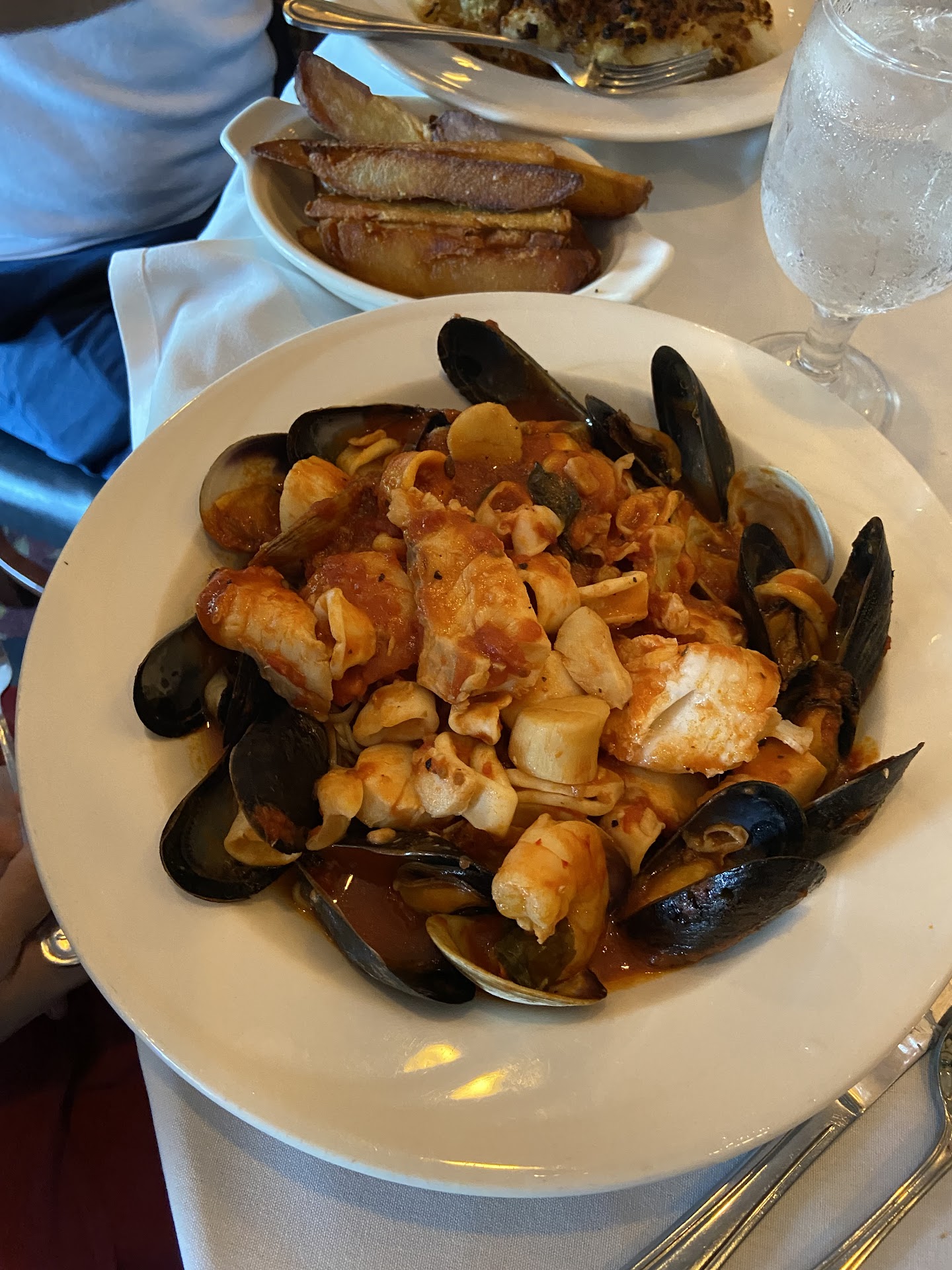 We were down from Montreal this summer and were told about Mezza Luna by a colleague. It is an absolute must when in the area, and if you’re not in the area, definitely worth the drive! This family run restaurant was by far our favourite part of our trip to Cape Cod. Everything from the feel when you pull up to the restaurant, to the decor, to the absolutely perfect service, to the amazing food, was perfection! We were a group of 9 including 3 young children (a10 year old, 7 year old, and 3 year old), and although they kept it together throughout the evening, our waiter, Matthew was an amazing host as he joked with the kids and made us feel like we’re at home. Can’t say enough about Matthew! As for the food, I don’t remember everything everyone had. The kids of course had pasta to keep it simple. My nephew and I both had the Baked Seafood Delight, which was absolutely amazing, and my sister in law could not stop talking about her dish, the Linguine Valencia Frutti di Mare, which she couldn’t finish but really wanted to. My wife and mother in law also found the veal parmigiana to be absolutely fantastic! Portions were quite large and filling, and we did have to take some of it back with us.
