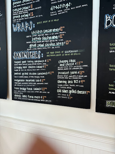 Read moreStopped in today to try a smoothie. We ended up getting a couple of smoothies, I think they were called Shore Road, but I cant remember, so good! A Taylor point sandwich made with grill chicken and a Megansett meatball, all delicious! They were very busy and service was great, and better, the line moved along!. We ordered at the very end of their lunch service and they were out of a few things, which didn't bother us at all. They happily made accommodations like grilled chicken instead of turkey which they ran out of. No menus online or in store. I took a quick pick of the sandwiches so we could choose today, I'll post it here, but you'll just have to stop in! Based on what we experienced today, we look forward...
