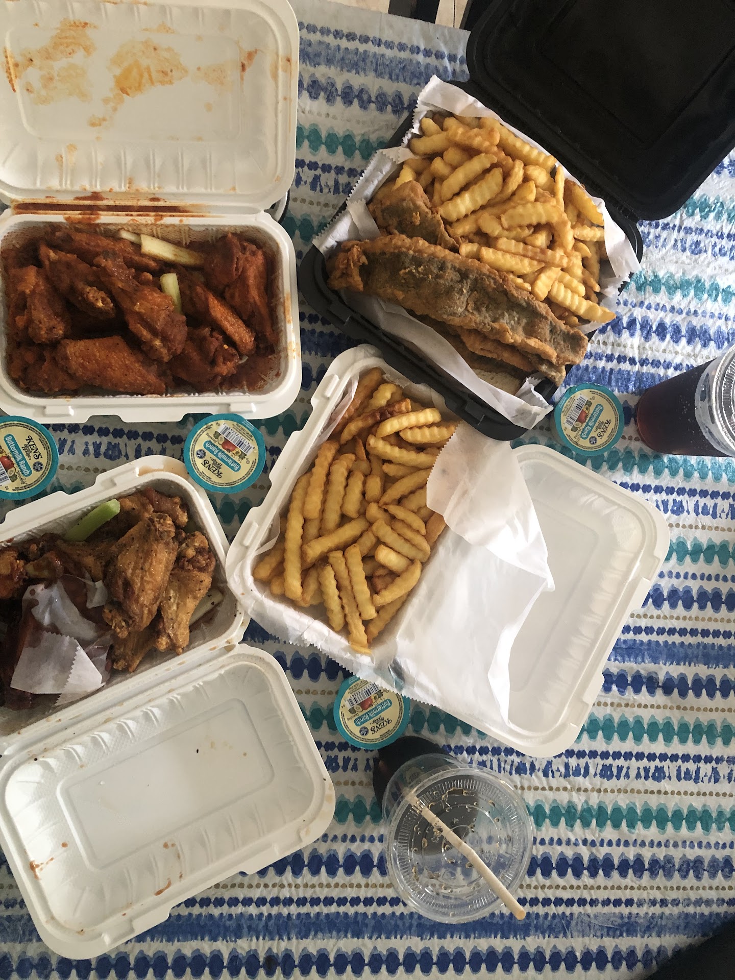 Wings were delicious. I ordered 3 different flavors and each were good. I had hot buffalo, hot jamaican jerk, and Thai chili. My least favorite was the jerk as they were a bit salty and I almost started using the blue cheese to overcome the salt. Hot buffalo were delicious and the Thai chili were just oddly sweet. Steak and cheese sub was very average and undersized for the price. Same with the butterfly shrimp platter which was $14 and highly forgettable, they were not terrible but it tasted like something you could do yourself at home from the frozen food section. They also had a lemonade machine which mixed away in front of you and a sign that says refills cost 50 cents next to it created an expectation of good lemonade. What was in that machine was an incredibly oversweet crystal light like liquid that I am sure have never had to watch over to collect the 50 cents for a refill. If they just had wings I would rate them 4 stars. If you stray from the wings you will likely be underwhelmed. The prices are a bit high but if you stick to the wings you...