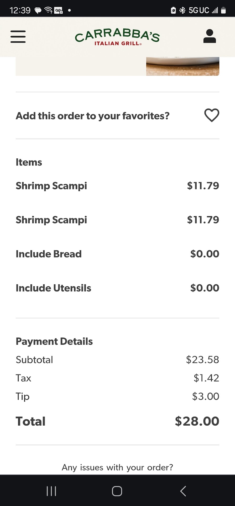 Read moreI have been ordering from the Bowie Carrabba's for many years now; in fact, it is my most frequented non-fast food restaurant. It is disheartening to see that my experience ordering from here has gotten worse over the past few years. I dined in once and did takeout/delivery every other time. I will never do another takeout/delivery order again. If you want to go here, I recommend dining in to ensure a better experience.