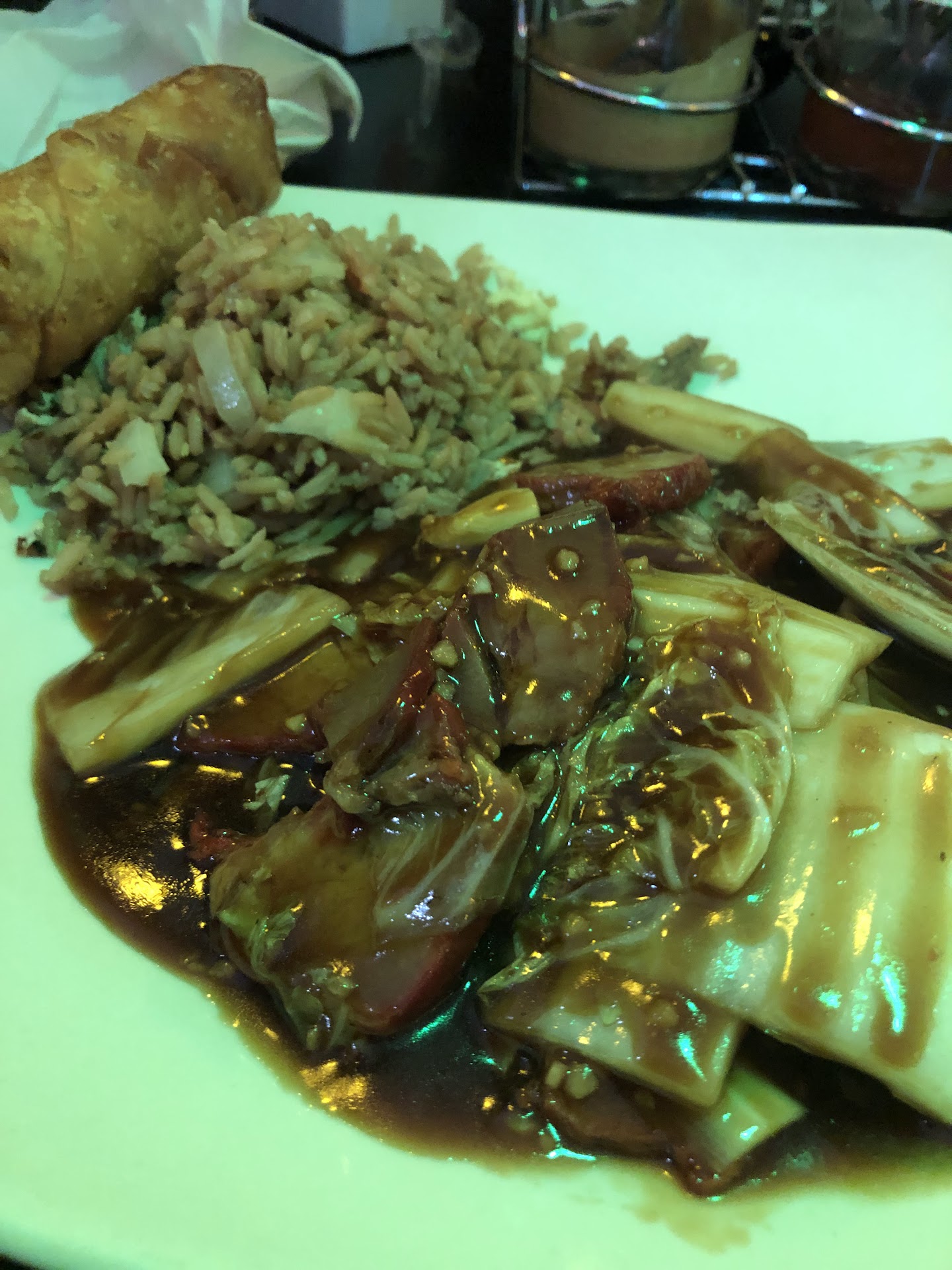 Read moreThis restaurant is designed & decorated nicely. It is cozy and intimate and even has barstool seating at the counter, although alcohol is not served here. I had a taste for eggplants, which seems to be a rarity among most small Asian restaurants. I called a few eateries around town to pleasantly discover that Golden Pavilion serves my delicacy. I had the eggplant mixed in with chicken & broccoli with garlic sauce which is my specialty dish; I didn't mind paying extra for a total of nearly $14. What a disappointment! My first noticeable gripe is that the large container of my eggplant entree was not filled all the way to the top! I've been to numerous such restaurants, and this has never been the case. The container is always filled up to the top and sometimes even over the brim. Oh but trust me, the small rice container was stuffed to the top. Secondly, the eggplants did not taste or look fresh with its vibrant purple color. This was a takeout order which was packaged in an impressive 5 minutes flat, and the customer service appeared to be good, but the experience left a bad taste in my mouth. I just wish that I had opened the container before I pulled off. Also, I neglected to take a photo to show that the food was one inch from the top, or 80% full. Drop the mike I'm done with this place. Don't be cheap with the amount of food, and don't cheat your customers! This is inexcusable!...