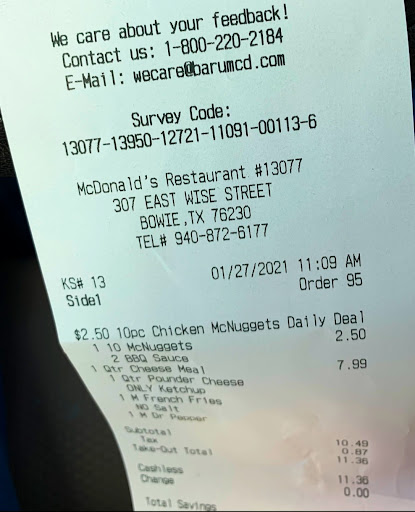 This was a total shock! First off, I have never left a review of a restaurant. However, this just has to be told! (Keep in mind, we have a farm with cattle, ducks, chickens, etc, so we are NOT easily offended.) We stopped here for a quick bite this afternoon and to cool off from an outdoor job on a typical Texas summer day. First off, there was no one else in the parking lot or drive-thru. That should have been our first clue. Next, the side door was locked but no sign saying why. We went around to the other door and were told the door was broken the night before, thus the reason it was locked. However, no sign on door to tell you that! When we asked why they were so empty, young man at counter said it had been "dead all day." We placed our order then went to get our drinks. They were out of sweet tea completely, as well as ketchup packets and sugar. My boyfriend went to the counter to tell them they were out of sweet tea at the drink station, so they got him a cup from the drive-thru container. I went ahead and got unsweetened tea and then had to search for three packets of sugar! The drink station itself was dreadfully dirty. We had to search to find a semi-clean table, the best of which was near the restrooms. Next, we each went in to wash our hands. Both of us came out shocked at the condition of the restrooms!! The women's toilet paper was completely empty, the floor and sink were just plain nasty, and the toilets in BOTH men's/women's bathrooms were malfunctioning. BOTH! (Now remember, he said they had NOT been busy all day!) Next, the place was REALLY warm, as if the AC wasn't working. Our food was luke warm at best, yet we were the first and only order at that time! Next, the place had an unreal number of flies! Yes, flies! At this point, we started looking around and noticed the tables were filthy and smeared with food (or something). The floors were filthy. The self-order kiosk glass was absolutely awful looking, it was so dirty and smudged. (Again, remember, they were not busy all day.). We started eating and saw the counter person go into the men's bathroom. We heard the toilet flush and then he came straight out the door!! There is absolutely no way he washed his hands that quickly!!! While we were there, several people came to the same side door, and still no sign was put up. Another customer got up and told the manager about the door needing a sign, and the manager just shrugged and walked away!! When we got ready to leave, we had to leave our trash on the top of the tray rack because ALL of the trash cans were PACKED full!! My boyfriend stopped to get another cup of sweet tea before we left, yet it was STILL empty!!! In short, this was the most abysmally managed McDonald's franchise I have ever seen in my...