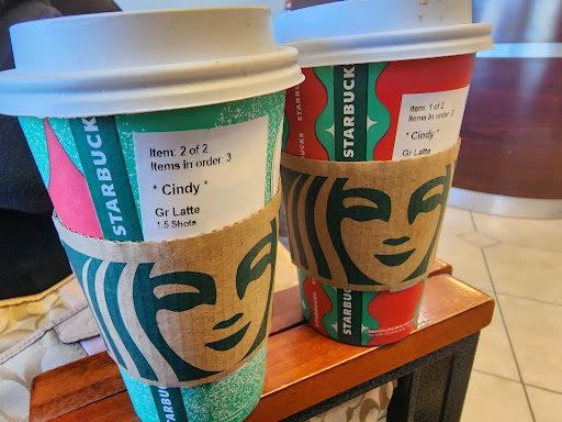 Also the parking lot is a tiny cramped disaster. I saw the SECURITY GUARD for the mall DOUBLE PARKING someone so he could stop in the LIQUOR STORE and watch KENO. F*. I know this is the fault of the mall, and not the Starbucks, but I want to give you fair warning if you have never been here.