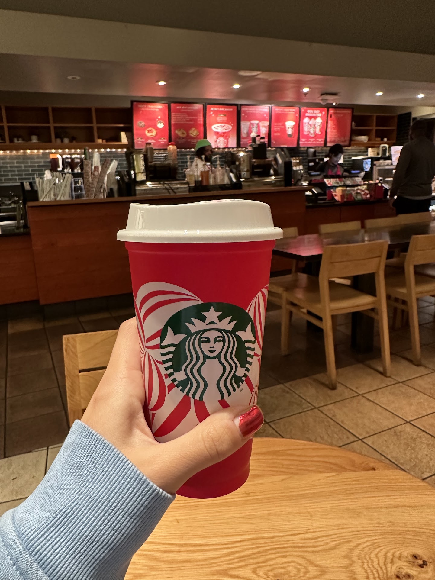im always coming to this location in the morning, each time i only placed a walk in order….. i order it at 710am and i always leave here 745 almost 8am …. Its like yall have enough people working i feel like the urgency of the walk ins get overlooked by the mobile orders …. Its annoying . Today i went to this location at 7pm to get a frappacino … walked in and there was no line i waited 3 mins before the cashier to stop training the new employee. So she finished up with her took my order now im waiting . It was pretty quick had got my drink under 5 mins , but when i got my drink it was very watery … i adked the lady if she could remake it because its supposed to be thicker in consistency, she said its because i added white mocha …. Like girl … i order this drink everytime i come to starbucks which is at least 3 times a week…. Never watery … she remade it then gave it back to me even more watery … at this point im asking for a refund because i dont want to go back and forth with nobody … i asked her did she add ex ice … she said she did and some other excuses … i told her if she could add extra ice .. she made my drink a third time and its fine … but i dont like when i know for a fact my drink is not supposed to be watery…. And im getting attitude for asking...