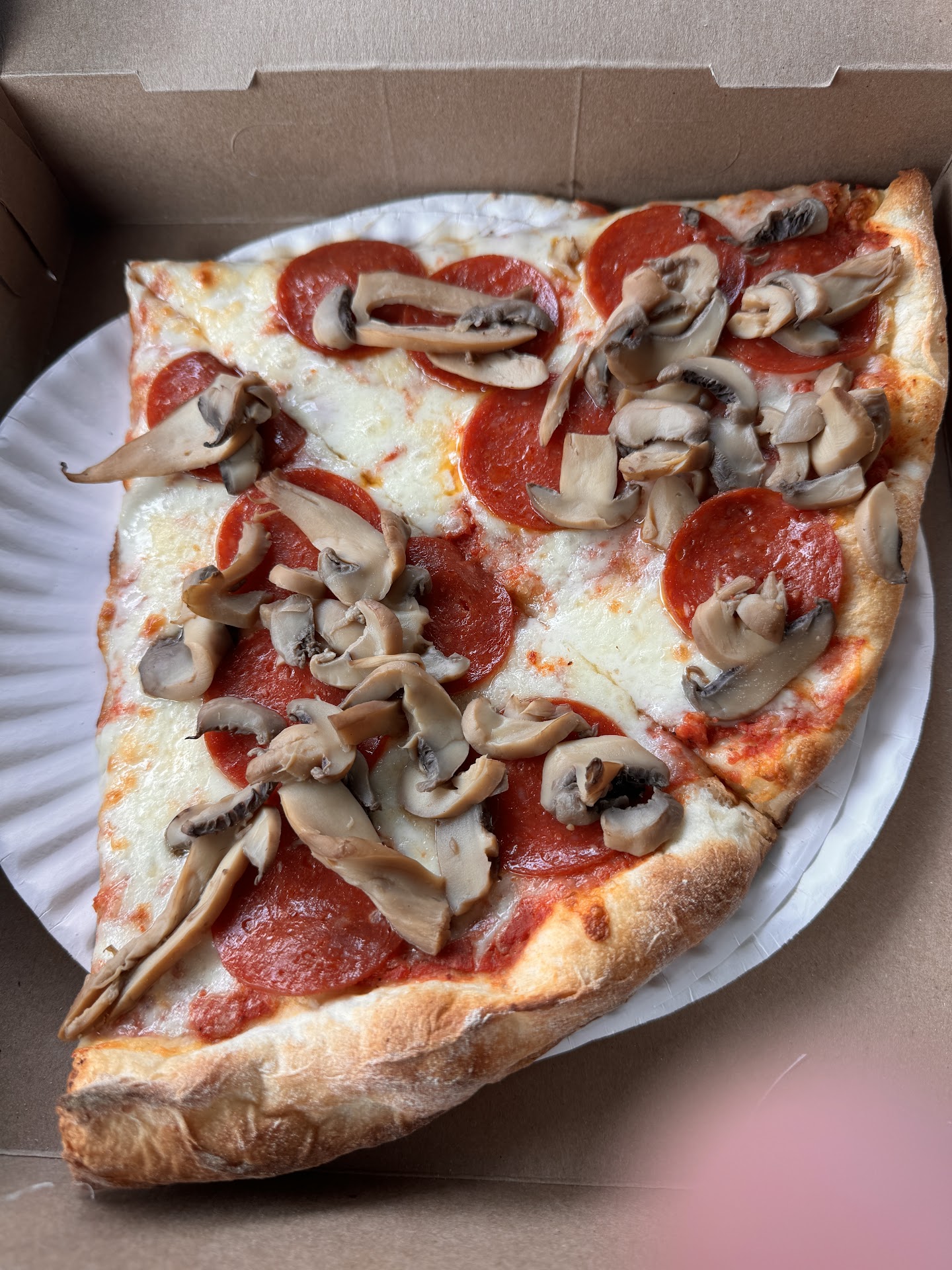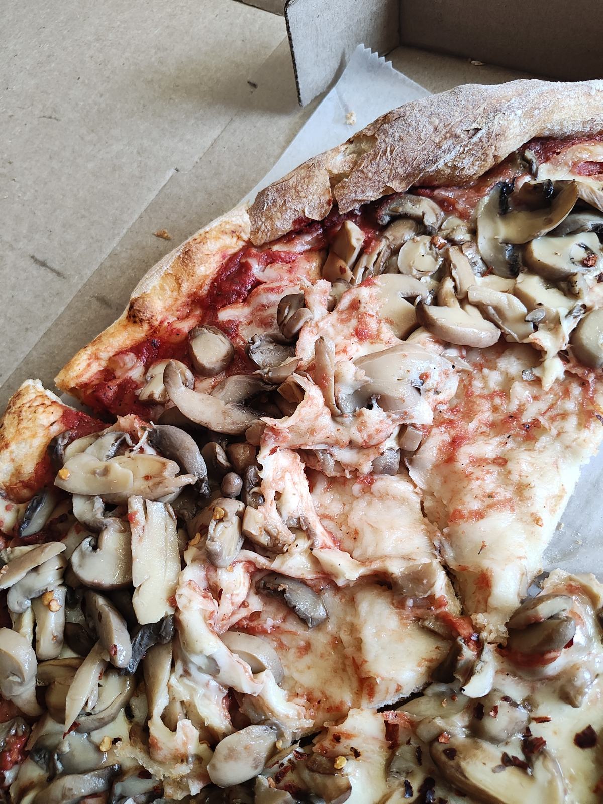 Read moreWhere to start? I included photos as they definitely speak volumes on the cleanliness of this place. Food: The pizza was bland. No flavor to the sauce and seems like it was just right out of the jar. The crust had a good cook to the bottom and had a nice crunch. What failed it was the overload of the cheese! Too much where the dough under the cheese was gummy. And jar mushrooms?? Atmosphere: The place was dirty and cluttered with pizza boxes. Look at the photos and see the black grime at the bottom of the counters. The refrigerated display case for the desserts had a problem with condensation and was draining water all over the floor. The soda machine counter, the doors look dirty, wet and disgusting. That black moldy looking grime was all over the place! Service: Nothing grand here. The lady who took my order seemed lethargic at best. Served my pizza and that was it.