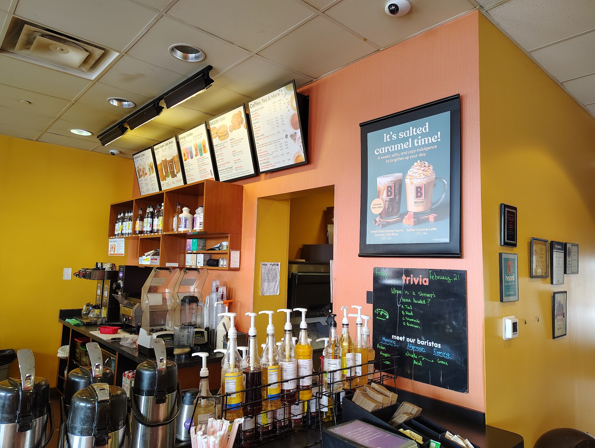 Ā Ā Ā Read moreI cannot sing enough praises for this particular franchise chain of Biggby! This location and the one in the French Quarter are definitely the most idyllic examples of customer service people should strive for in the industry. They not only know my usual order, but can usually remember my backup, too, or suggest new drinks based on what I commonly order. The drinks and hot foods are consistently tasty and great portion size for price, comparatively. The original drink recipe menu has flavors for any mood, and some workers will even help you brainstorm new ones to try out. The front of house is always clean and inviting when I visit, and the workers create a fun environment with their friendly attitudes and customer engagement, especially when I play along with the Daily Trivia questions! I will go out of my way to visit one of these two locations, but even the brand itself with other franchises is consistently a great value! Definitely worth a stop if you...