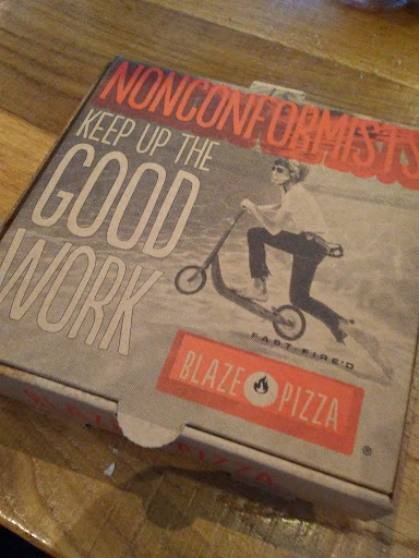 Any time I'm in a new place and want pizza, I look for fire-baked pizzas that will deliver. If they don't have wood-fired pizza, I'll go ahead and get the next best thing: straight up fire-baked pizza. The place is called BLAZE, so I'm guessing this pizza has absolutely perfected fire baking to have the concept nailed, right? This is where we have to get to the crust: while not terrible, floppy, nor raw, there was no blistering, no "leopard print," no unmistakable TASTE of a fire-baked pizza. The dough itself was also quite bland.