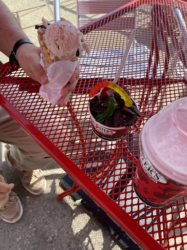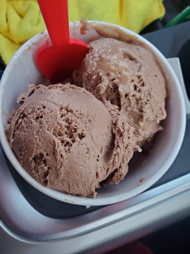4.5 stars-please believe me when i tell you this ice cream is high quality and delicious. made on-site daily. anyone who says B&R is better doesn't know ice cream. they may like it better but this is much better quality all around. i've eaten ice cream in at least 35 states and many other countries and these folks make a great product. their flavors and formulations are outstanding. scent of fresh waffle cones as we arrived. yes, only outdoor seating. the young man who helped us was very patient as i grilled him on my flavor questions. very impressive they also have the sherbet/sorbet selections also. wife and i chose chocolate peanut better buckeye and chocolate raspberry truffle. the peanut butter had a butterfudge/peanut butter ice cream base with with mini peanut butter cups. my wife is usually disappointed in the flavor when she chooses a PB ice cream but she could not have been happier with this. my chocolate raspberry truffle was one of the best examples of this flavor mix i've ever had. and it's my go-to any time i see it on a menu. rich fudgy chocolate and a ribbon of berry flavor throughout that reminded me of a home made topping dear old mom used to make. plus some nice chocolate flakes mxed in. this made me wish i could have it shipped to my home it was that good. don't think they do that unfortunately. if you see a Bruster's in your travels and love ice cream, definitely stop in....