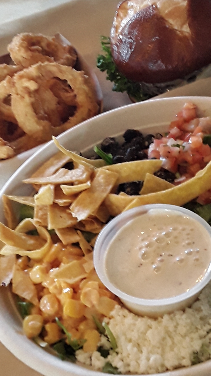 Read moreGreat concept, good variety, nice atmosphere. Burger & Bowl gives you the ‘fast casual’ concept...casual good eating in upscale surroundings but includes quality fast food offerings like gourmet burgers, fries, and shakes. Not feeling the burger and fries, then try a fresh Protein/Power Bowl filled with grains and veggies. After your meal, grab a latte from the full service coffee bar. Location and parking are great. The warm modern atmosphere is open with plenty of spaced out seating. An ideal place for working lunches of one; or grab a long table that seats eight for bigger meetings. Menu offers lots of variety but can get a tad pricey if you add protein options to a bowl. I got a bowl with quinoa and veggies. I didn’t care for some of the flavor combinations, but I am seeing now that everything is customizable! They will tweak any bowl/meal, so no worries if you are following the keto, paleo, or Mediterranean diet, etc. Service was ok. They do offer touch-screen ordering but service with a smile was a little lacking...and, I had to wait over 20 minutes for my food. There is a large display that tells you when your order is ready...not sure why as someone yells out your order number as it comes to the window (a little distracting to the vibe). Overall, this place has great potential and I will...