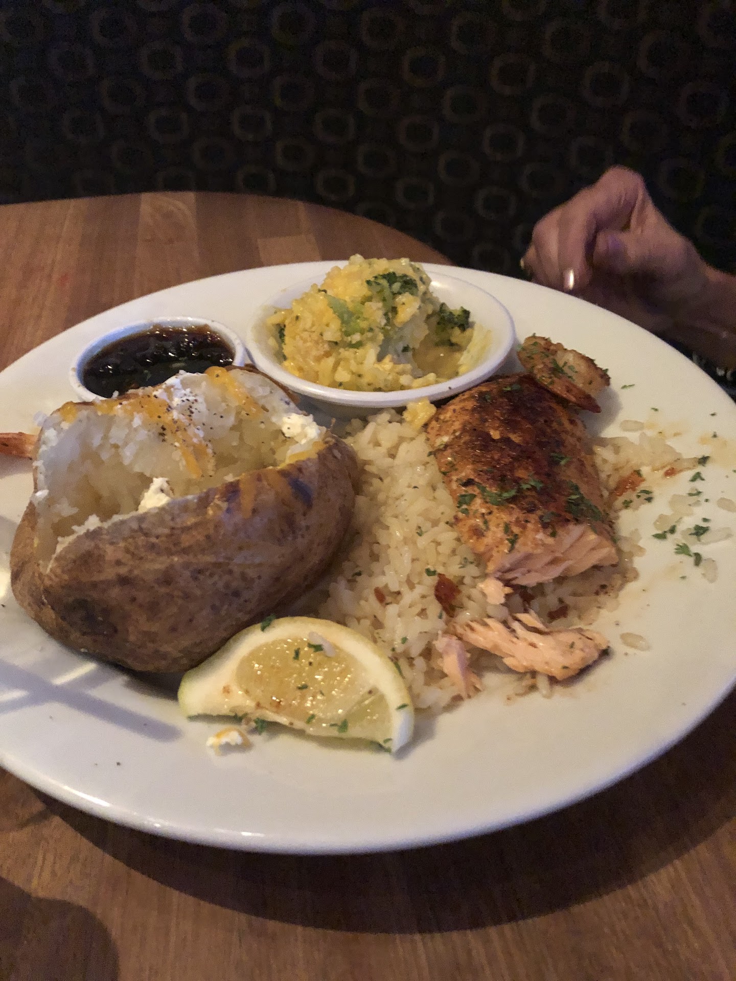 Read moreThis review is based on a visit during the covet 19 virus pandemic. First off I can't thanks for hostess the waitress and everyone else in the restaurant for wearing their masks as they provided their usual service. Also many tables were simply closed in order to preserve 6 ft of space between patrons as they were seated. They are working off a reduced menu which fits on a single 8 1/2 by 11 page, which means they don't have to constantly clean the larger full menu and can instead print off a new menu for patrons as they come in. This ensures that the virus generally isn't on the menus at all. They also keep cleaners at least an hour area visible and marked as keep with the section number. I ordered the white fish with lemon pepper corn and green beans. My my friend ordered the steak and tenders combo with broccoli cheese casserole and something else I've completely forgotten. We also ordered the spinach dip as an appetizer.