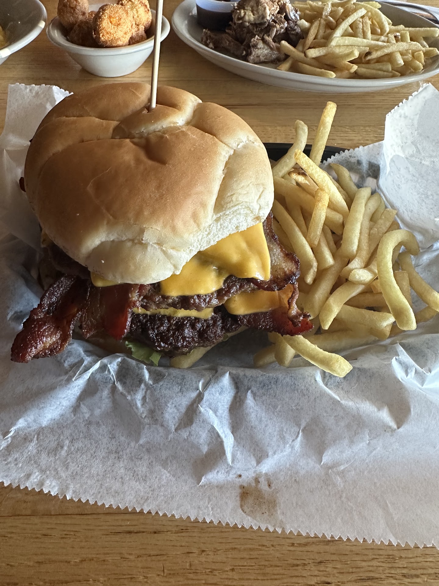 I myself ordered the Double Bacon Cheese Burger. In my honest opinion, it was a very good burger. I did not expect it to be as big as it was. Sadly, I had to take a take a to go container because of the size. My only regret is wishing I could have ate the entire thing.