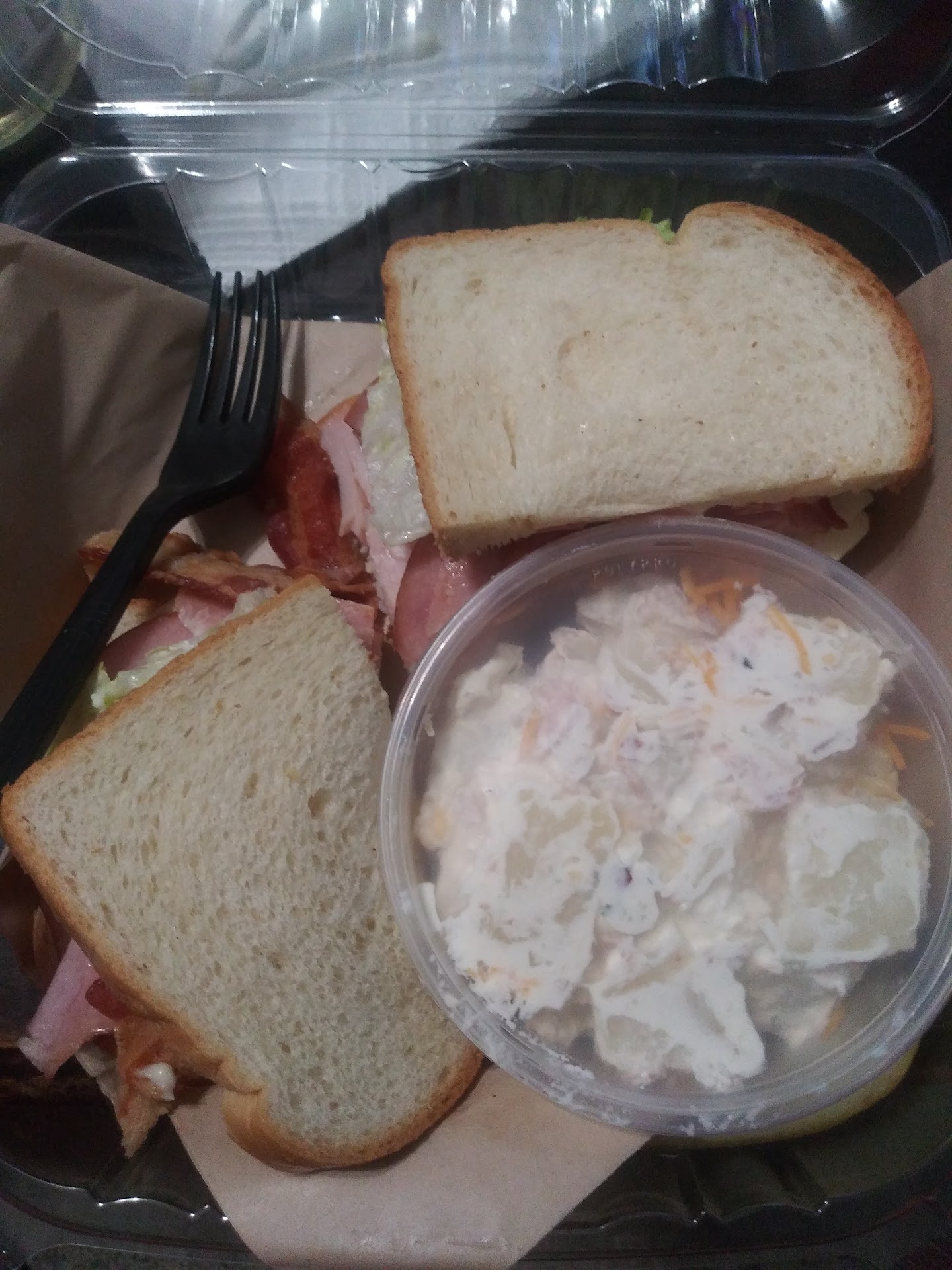 A deli with stale bread is just a sad deli. Other things why we will not be back: adding balled up meat that didn't cover the whole sandwich not sure why it needed to be golf ball size in the middle of the bread it's a deli so thick gristle meat is not expected but every restaurant does thier own thing, cold potato when they have a whole section of the menu dedicated to potatoes I wasn't expecting one that had been sitting around for hours it wasn't like we took it home- I opened it in the parking lot that thing should have been steaming!, and absolutely zero hustle from the staff we ordered 2 sandwich and a potato watched the kitchen staff moving around like they were lost, then when they set our items up in the window the girl that took our order answered 2 phone calls before looking at us and looking at our food back and forth a few times before deciding to bag it up. And calling out my name like she was looking for someone else. We were the only people there other that one table that was already eating.