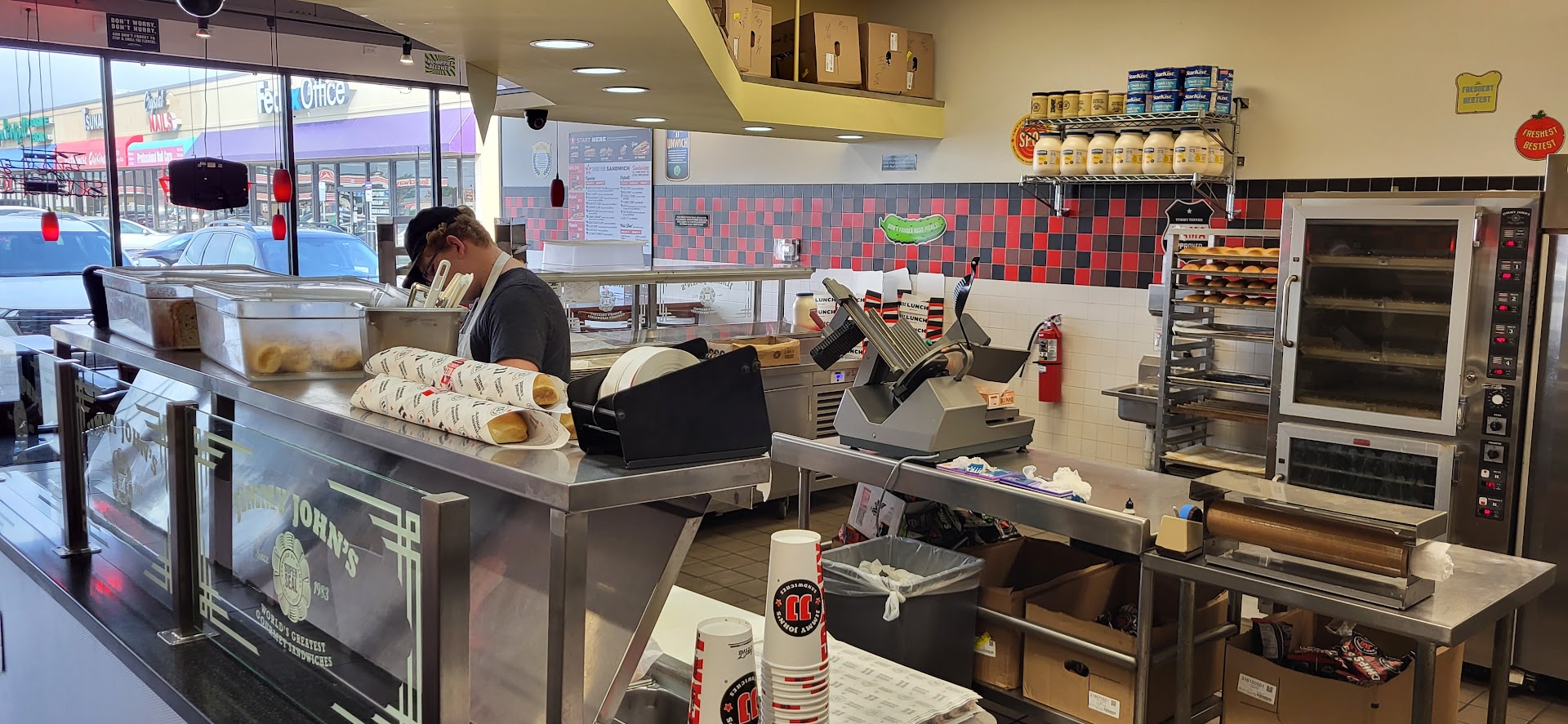 Service, besides being fast, is a little touch and go however. It's impossible to find a napkin and you aren't given one, and these sandwiches NEED napkins to consume! Also, when I tell them light on the mayo (because otherwise it's drenched in the white goop) they don't often pay attention to the "light mayo" request and I wind up with a goopy white mess rocketing out the other end of my bread...