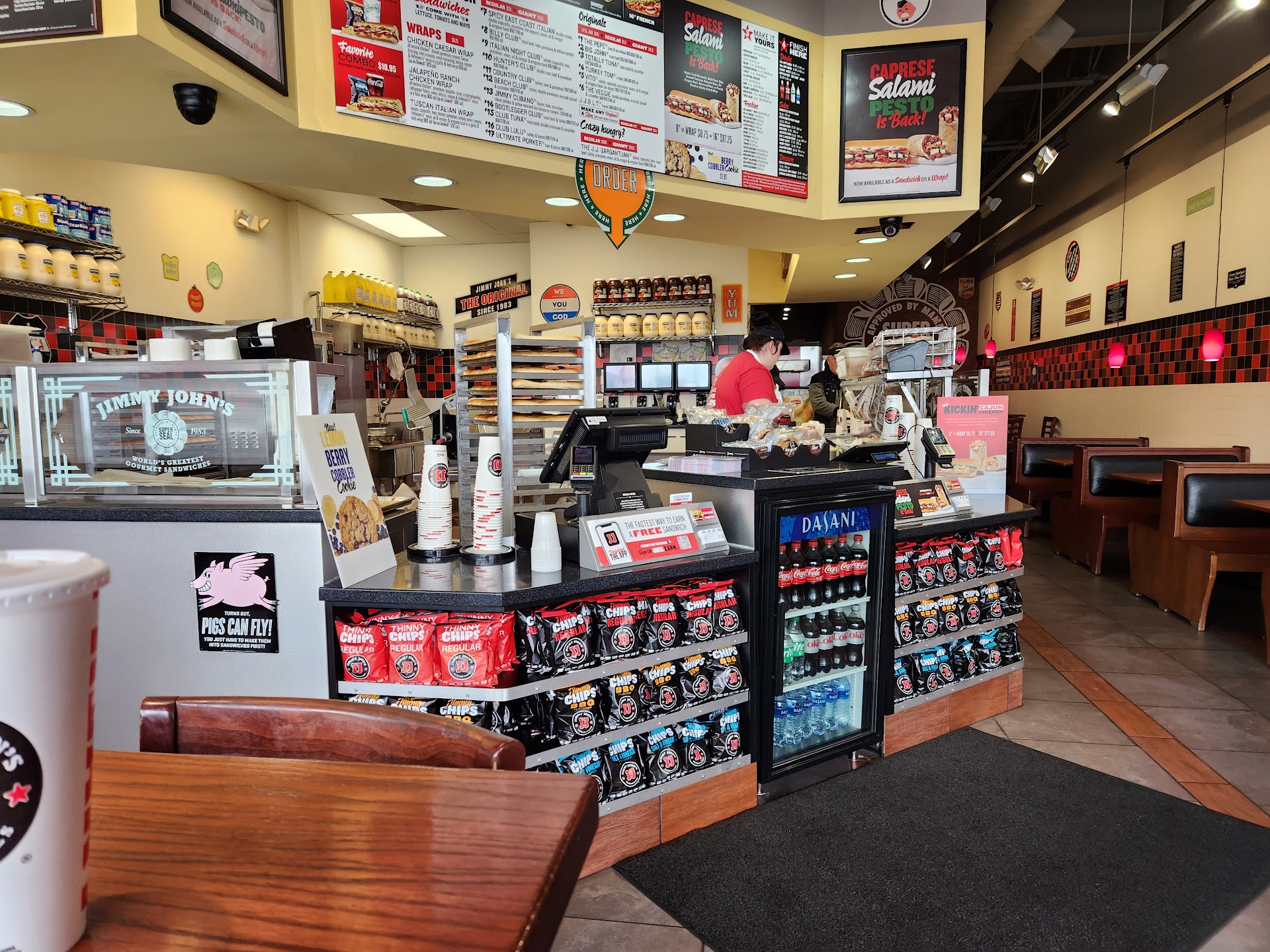 I went to the Jimmy John's on Campbell lane in front of Walmart. I have always been satisfied with the freshness and flavors at this location. On Friday, Aug. 4 at approximately 7:30. I ordered take out, specifically a Thai chicken wrap and a Jalapeno Ranch Chicken wrap. The tortillas were dried out and broke off into about 60 to 70 pieces. It's no wonder he didn't cut in in half which is customary. The vegetables, far from fresh, were mushy and both wraps tasted like salt from one end to the other. I think he forgot to put jalapeños in it. I didn't taste any jalpeño whatsoever. The sauce in the Thai chicken was good, unfortunately most of it ended up in the wrapper because the tortilla broke up so badly there was nothing to hold the sauce in the wrap. I used to enjoy getting sandwiches and wraps at Jimmy John's, but I doubt I will ever eat there ever again!! There is NOTHING I would...