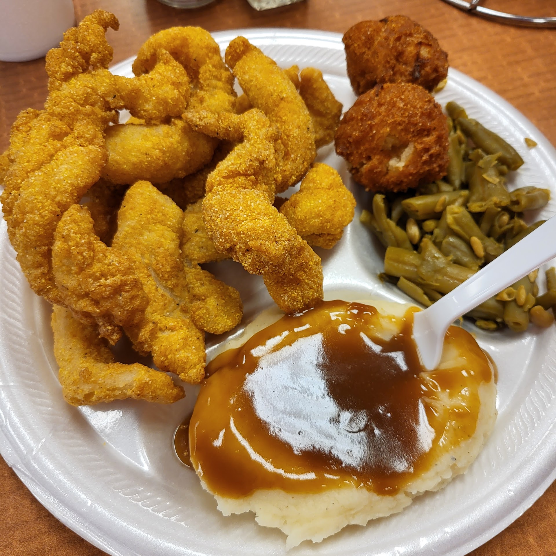 Read moreThis is open Tues, Thursday, Friday. Saturday. The interior is from 80s maybe. Service is somewhat hit and miss. Sides are mostly potato based (fries, tots, mashed, etc) and green, white, brown beans. Several plates with two sides are available. I always get the catfish platter. The catfish, by itself, deserves a 10. It is sweet and flaky with a yellow corn breading that is crunchy without being heavy. I also like the house made mayo cole slaw. Try it out. Kid friendly and family encouraged. Basically...