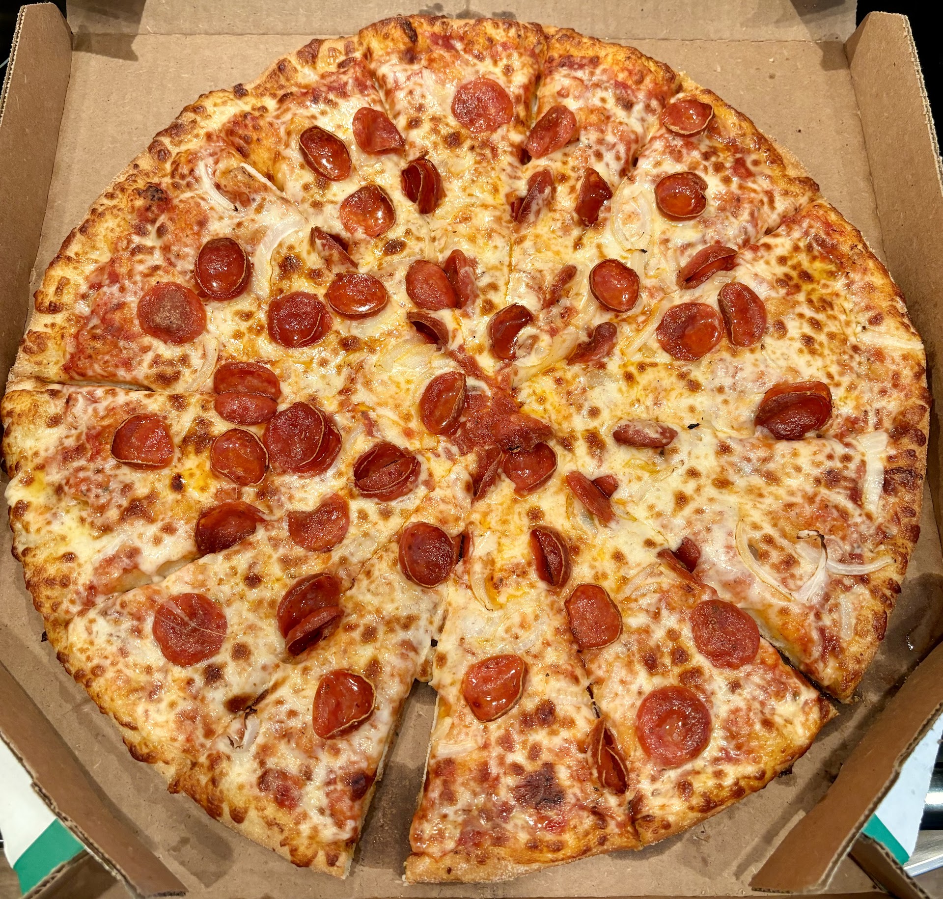 My husband discovered Marco's via Google Maps search for pizza options near work. Seeing as they deliver and the ratings were good, he gave them a chance. He sent me this photo and proceeded to spend his entire daily call during lunch torturing me by describing why it was one of the best pizzas he's ever tried. Considering his love for pizza, he knows a good pizza and so his praise has me quite curious. Mouth watering jealous as well. I'm rating 4 stars until I have a chance to visit and see if this pizza is as impressive as he claims. The price was as impressive as the size. The photo definitely doesn't do the size justice. He shared a few slices with coworkers and now they've been ordering pizza too.