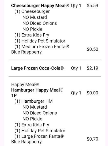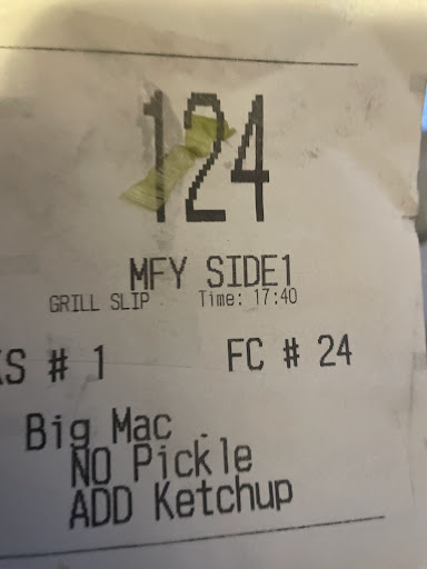 Read moreWe arrived at 4:40 I ordered two big Macs identical, we just wanted no pickles. It was I pick up order, we got our bag I asked him if the entire order was in it we went home and we're missing one of our big Macs, I drove back on the way back my wife told me that her big Mac was incorrect I presented receipts she had a little paper that said that it was supposed to be made a certain way and it wasn't, Then I am in formed that they will not exchange the big Mac that was made incorrectly without me going back home to pick up the original one. I went all the way back home picked up the original one went back, then I was told that they were supposed to be two the bag I said it I realize that but there weren't that's why I came back in the first place. So finally after a lot of arguing