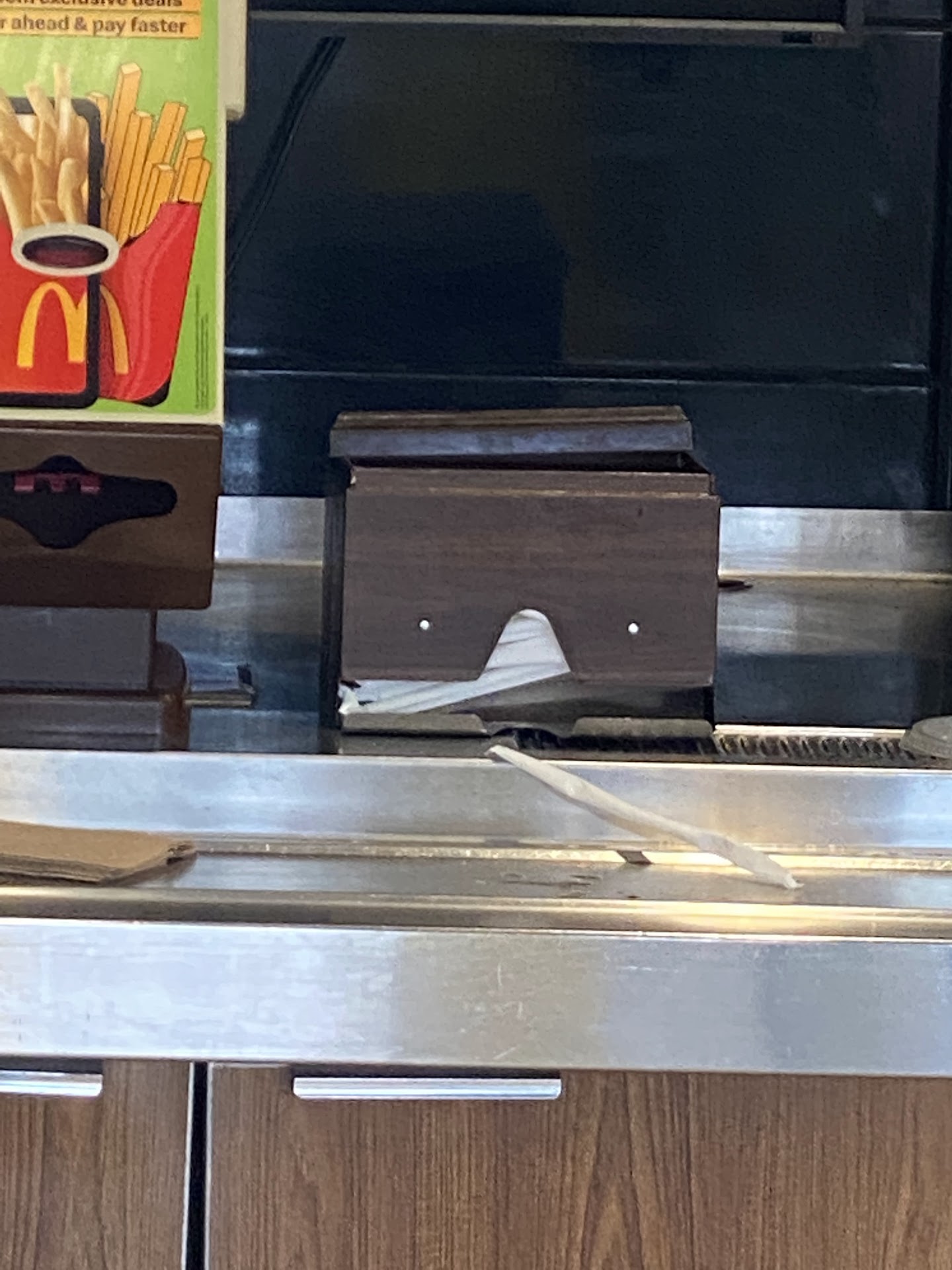 Read moreI came in with my 4 year old son for lunch. I stood there for a bit, and someone finally came to the counter to take my order, my son got a kids meal, and I got a McDouble and a small fry, my order sat on the counter top, for about 5-7 minutes, while a worker approached us and said we are waiting on fries. Meanwhile we are still waiting, the manager says your food is right here we had to wait on the fries.. my son and I sat down in the playground area, and I began to separate our food , the fries are FREEZER cold still, my hamburger was cold, the cheese was still cold as if it came out of the refrigerator..the establishment’s now days are definitely not like they were BACK in the day.. I believe the only thing good that I liked was my coke and my son likes his hi-c other than that he ate his nuggets and we threw the rest away....