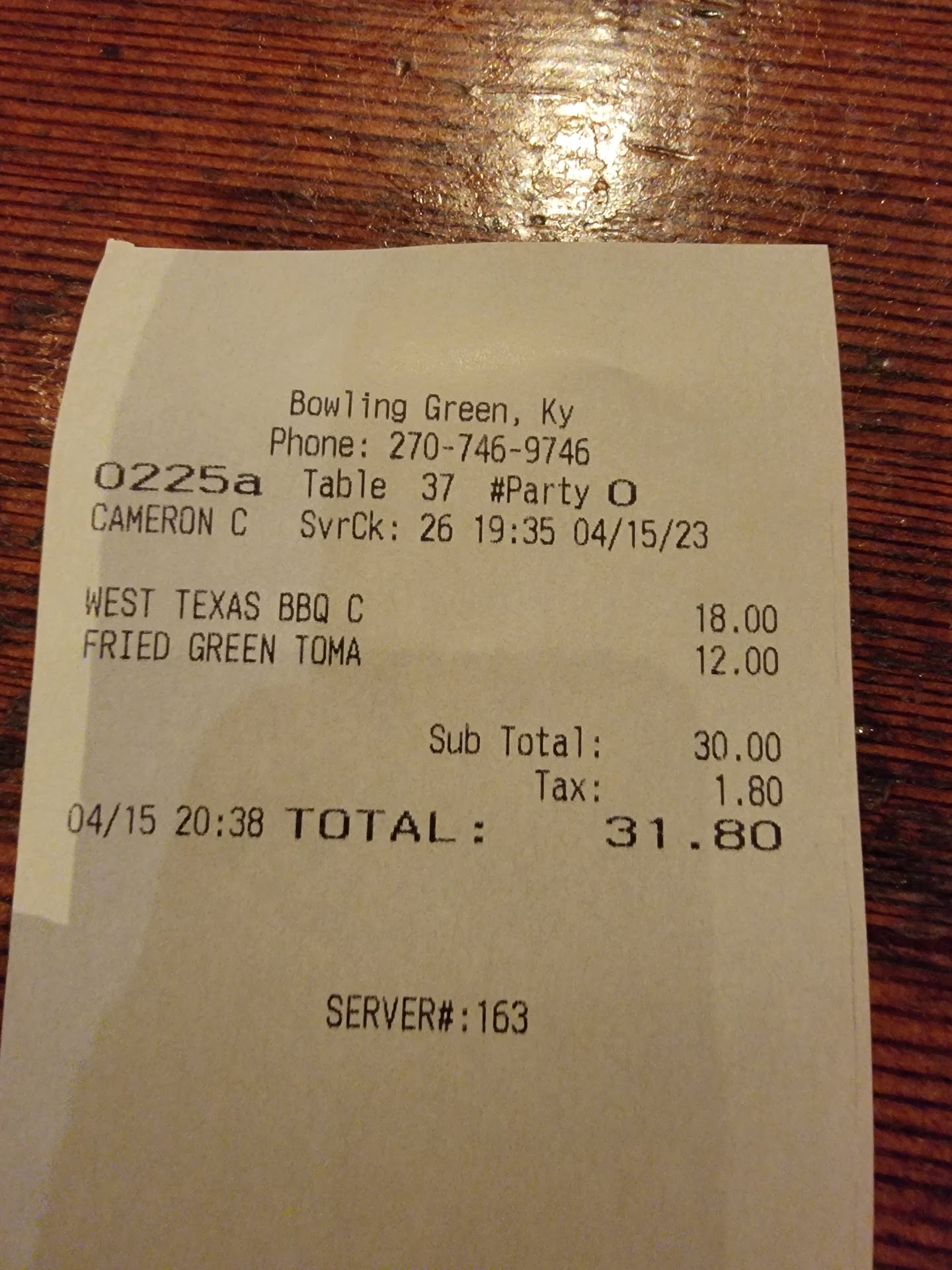 We should have went down the street to the Texas Roadhouse at least I would have eaten steak that night. Very disappointed and I do not recommend this place! So much for our last hoorah before leaving Bowling...