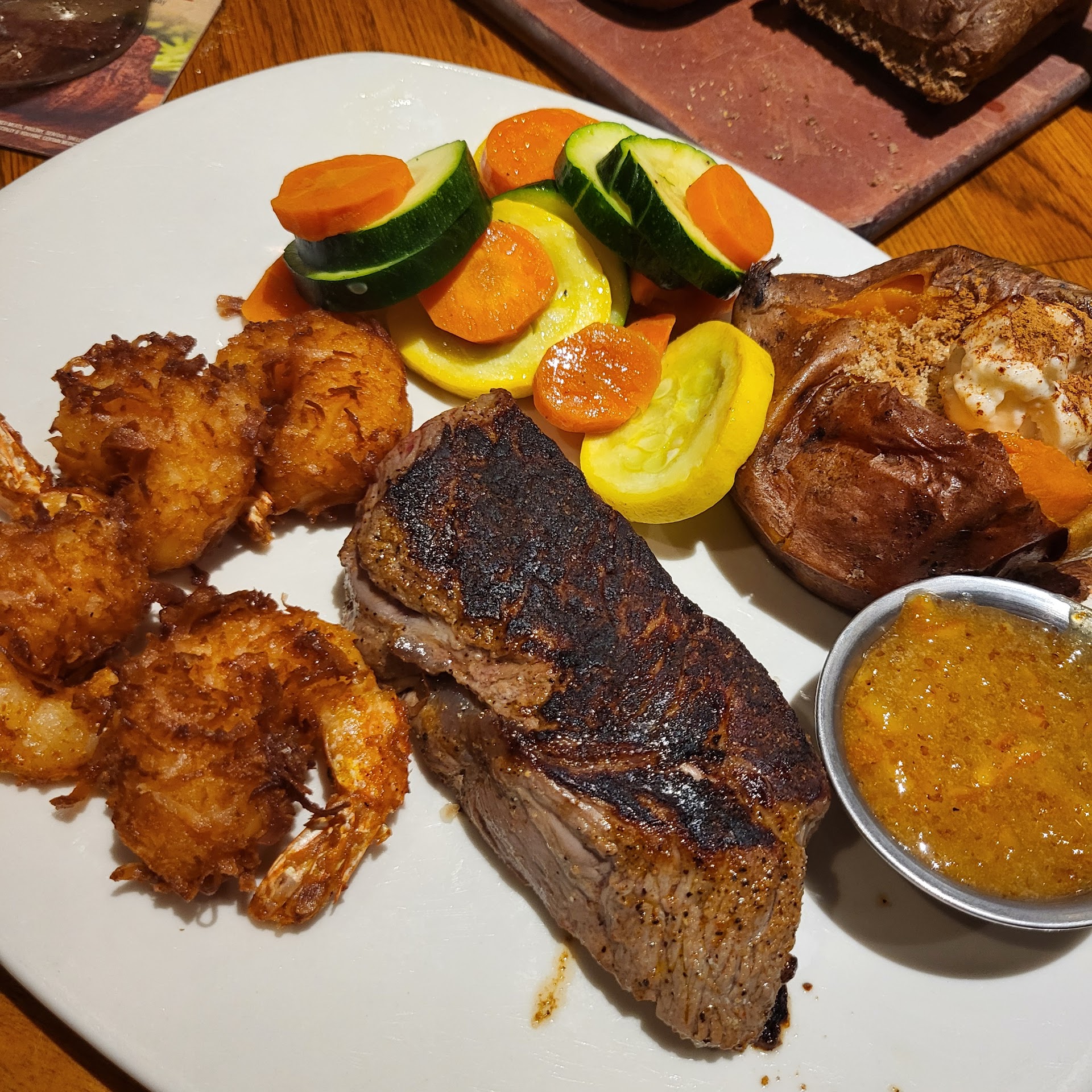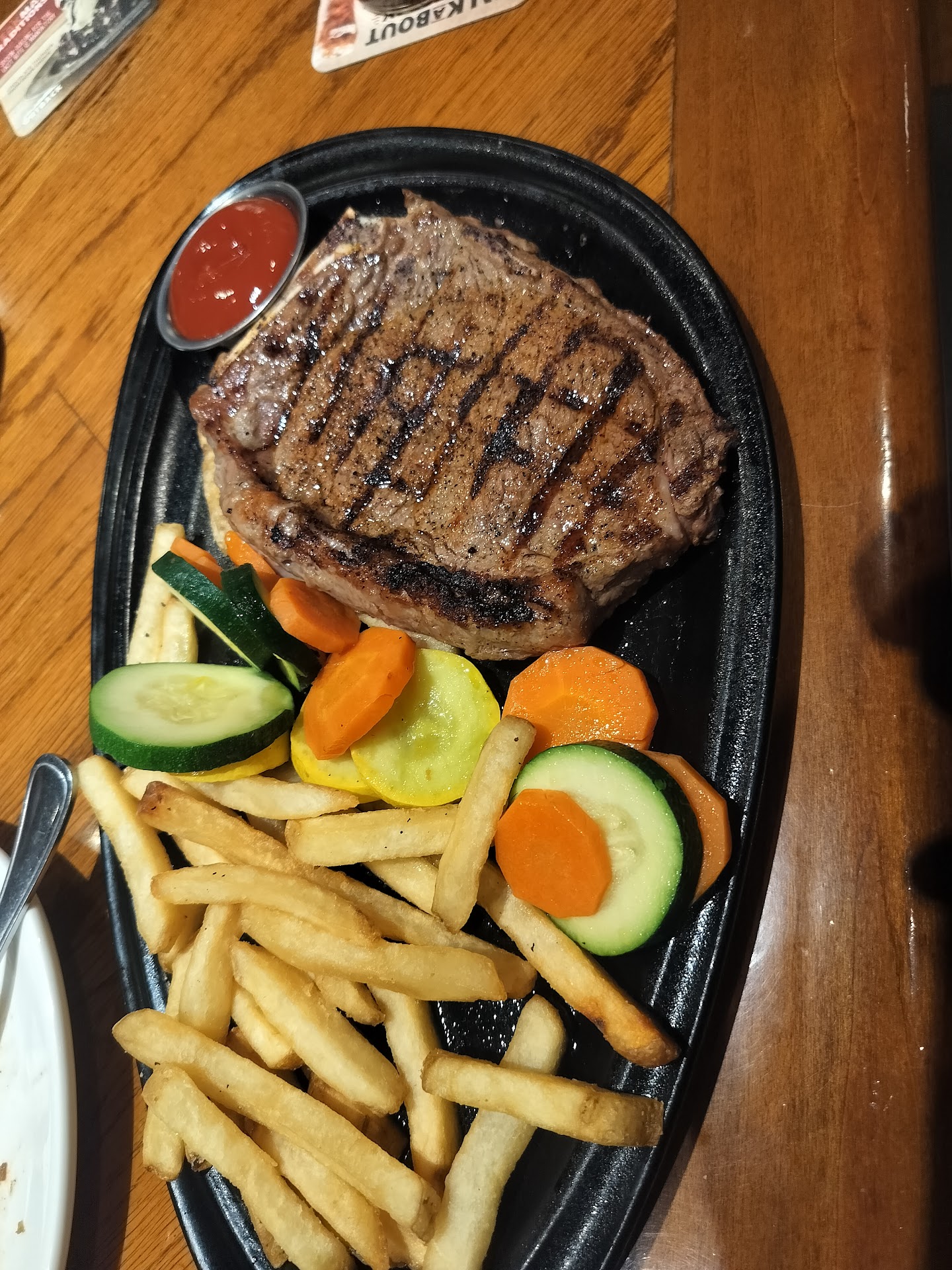Ā Ā Ā Read moreWell I had dinner with my 2 sons! One of my sons n I ordered the 6 oz.. sirloin! The other son ordered the porterhouse pork loin! The sirloin that my son n I received was somewhat tuff to chew! Mine was well done, his medium! Also I dont care for the ranch dressing, bc of the spicey flavor in it! Even the mac n cheese had that spicey taste! Some may like that taste, but guess what, some of us dont like it! So why not have some of both, spicey and not spicey! So when the young man came around and asked if everything taste good, I said ,no! He wanted to know what was wrong, n I told him it was the steak!His reply, well I'm sorry about that! He could plainly see all the steak of mine wasn't eaten! Apparently Outback doesn't care if the customer is satisfied or not, bc the young man, didn't return! So if I eat there again, n im not sure if we will! You can believe I won't order the tuff steak! For the price I paid for a 6oz sirloin it should have been so tender it would melt in my mouth! Keep serving food like that n you may lose business! One last thing, the waiter wasn't to concerned about the customer either, at least for me, he brought refills on colas to my son's, but never asked if I'd like a refill, and since it was getting watered down, I had to ask for a fresh cola, n when he finally brought it to me, it looked as if the ice was melted some bc it was at the top of the glass! He checked on some of his customers more frequent then others! When he brought our bread, we had to ask for plates to put it on! When he brought them, we didn't use them, bc they didn't look clean! We just put them aside n never said anything to him! So I was very dissatisfied with the whole...