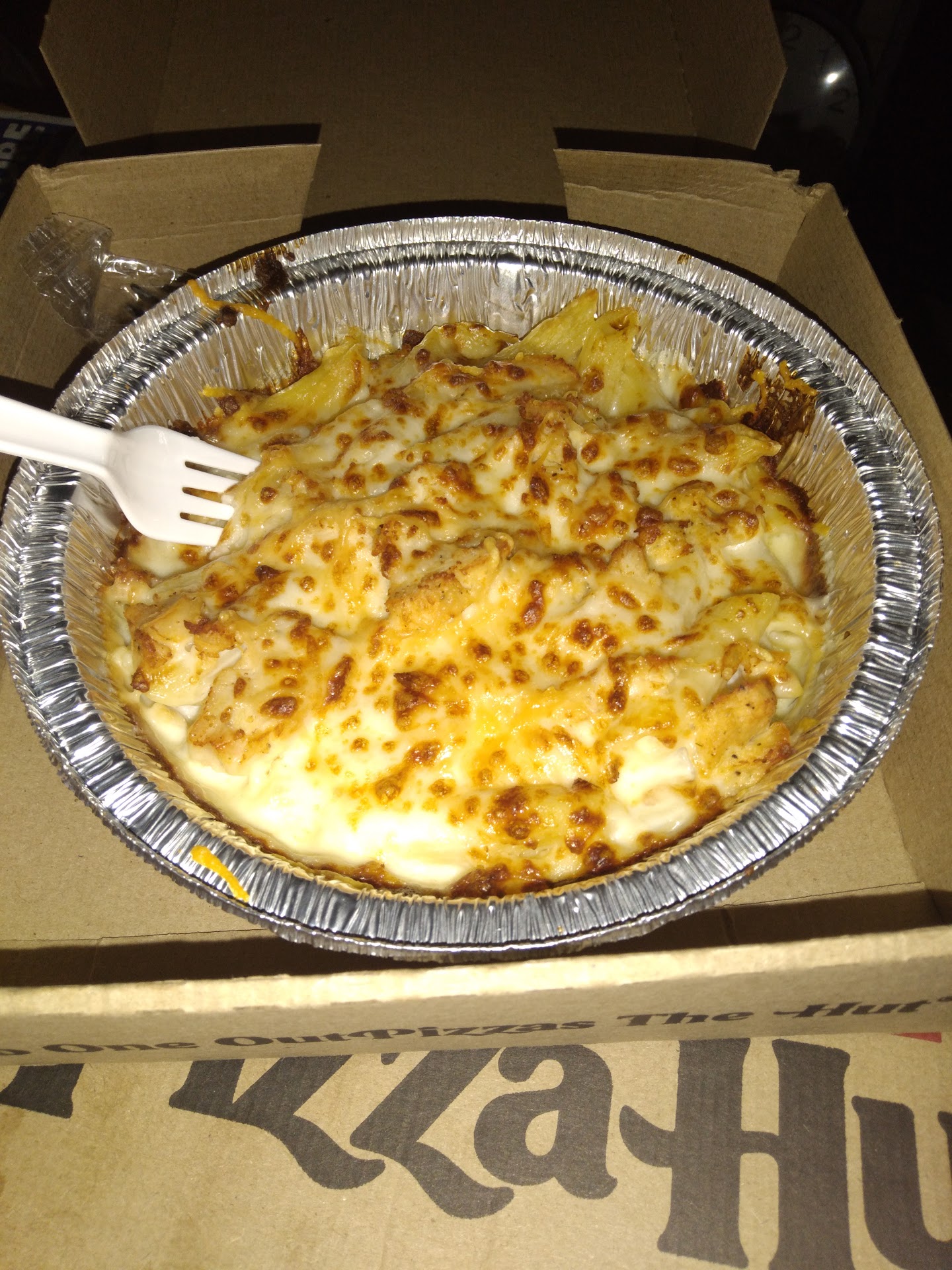 Read moreIt may be that "no one can out PIZZA the hut" but the pasta is outdone by everyone! Ordered chicken alfredo. The pic online looks like you'd have enough for 2 but it was barely enough for 1! Pasta is cheap! But not at the hut. Had 3 pieces of chicken in my order... THREE bite sized pieces. Also had something extra that i couldn't identify. 🤮 Luckily pastas come with breadsticks , which were delicious (earned the second star!), but i wasn't originally given them when i went to pick up my order. I had to go back into the store to get them. It's been probably 20 years since I've had "the hut". I'll probably wait another 20 before ordering again. UPDATE. no response to previous review. Here's one for the MELTS...I thought I'd give them a 2nd chance ... Website states "signature Thin ’N Crispy® crust loaded with toppings and cheese, folded over and baked to melty perfection". Sounds good and it's not bad. Too crispy for my liking. BUT what i got was a quarter pizza size OR HALF a crust folded over. Not an accurate description!...