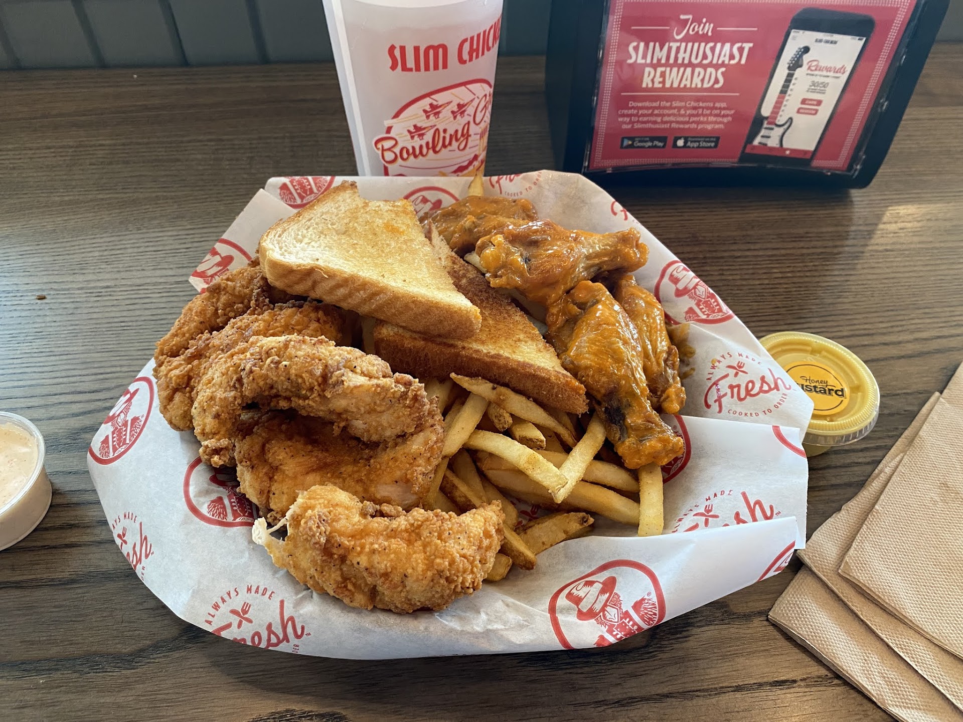 Read moreSo last night I went to Slim Chickens for the first time, and I ordered a slims meal. I ended up being charged for 2 6 piece wing meals and was given a single chicken sandwich. I went back through the drive through they voided the charge, gave me the correct food and I went on my way. Decided to give them a second chance today. I ordered a club chicken sandwich meal no lettuce no tomato. My sandwich came with lettuce and tomato on it which I didn’t mind to pick off, but it showed me they can’t get an order right. A few bites into my sandwich I felt something tear and upon further inspection found what appears to be parchment paper in my sandwich. I get new restaurants come with hiccups but with both of these experiences happening so close together I’m not sure if that excuse is applicable here. The food is good, you just may not get what your ordered, or something...