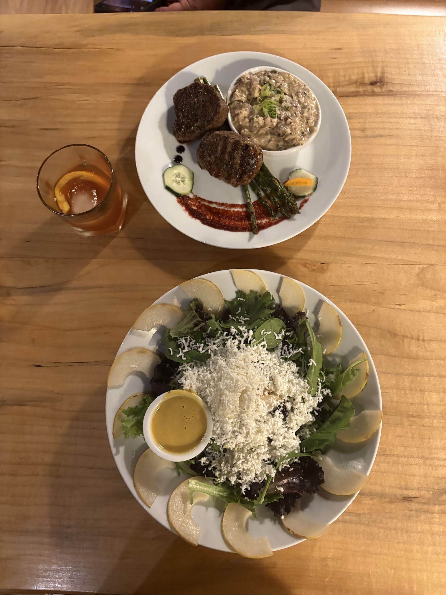 Read moreFood was very good, but for what you get, I really thought it was priced above it's level. I ordered the sea bass, my wife ordered the waygu filet. Both came with predetermined pairings. I had water, she had a bottle of coke. Drinks cost us two different $4 charges for drinks. One was for a random non-alcoholic surcharge that I can only assume was for the complementary water they brought to the table before we ordered and was never refilled. Mine sat empty half the meal. We both ordered items that were market priced. We also had dessert: a lemon blueberry cheesecake and a peach crepe. Total was north of $150. We expected about $100-110, after tax, based on the most expensive market prices listed on the board. Both our meals weren't priced (I get it buyer beware). But you typically expect a menu to vary in price about 20% of the average, not 50%. We tried it. It was good. We are new residents to BG, but honestly we'll probably drive 20 mins to Downtown Toledo next time we want a fine...