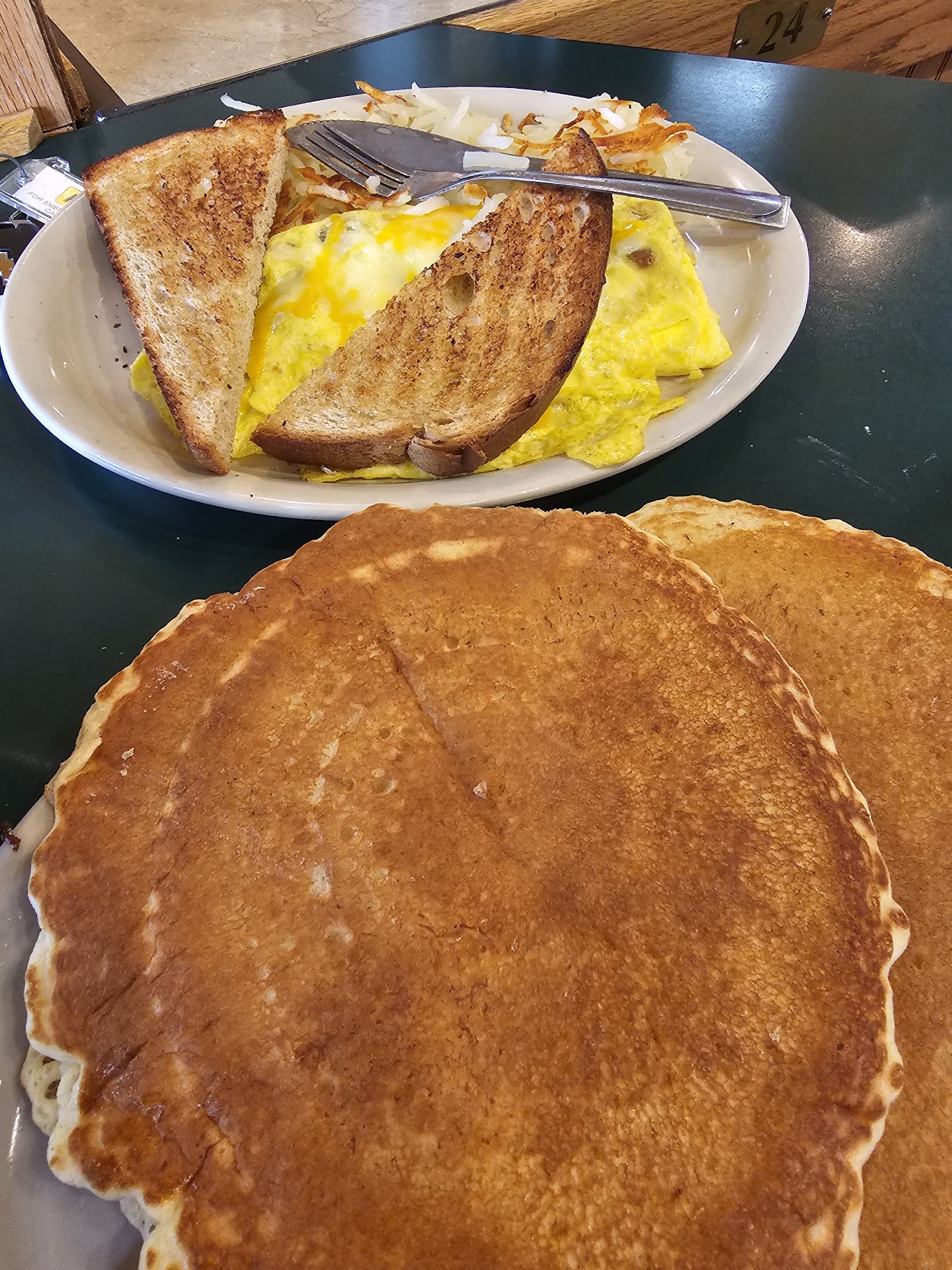 Read moreWoke up nothing to eat at the hotel (at least not good food anyway). Went to my favorite Google maps in search of a place to get some breakfast. This restaurant popped up since it was closest to the hotel. From outside looks ran down. It is attached to a restaurant and casino. Inside was decent, so I had to commit, plus I was straving at this point. It was super busy since it was the Easter holiday. Sat at the little bar and grab a menu. It is a sit yourself restaurant (FYI). Server Crystal was hustling but very nice. I was able to get my order in and waited no more than 8 minutes for food to arrive at the table. It was very delicious and enough food to where you did feel you were getting ripped off by price. Highly recommend if in area. Plus, it's a military discount on food. I now have lunch for the hotel and possibly dinner. I got the order of pancakes plus bacon and omelet monsoon. Total price 30 bucks...