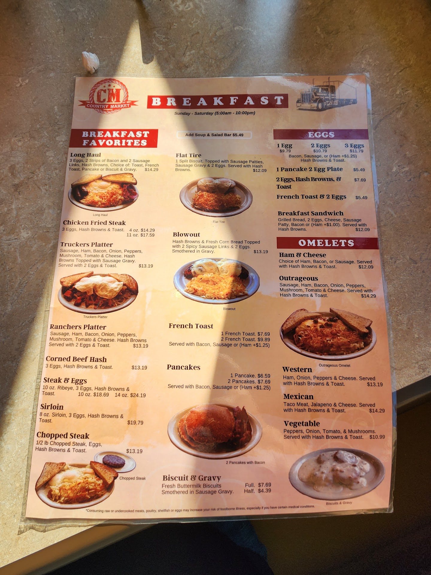 Read moreI stood there waiting for someone to acknowledge me, after noticing that EVERY server saw me, a few minutes later a waitress said "can I help you sir?" So I stated the obvious; because I never saw a sign that said seat yourself. When she brought me a menu I told her exactly what I wanted before she set it down, 5 whole minutes later the very same person came back to the table and asked me what I wanted to order so I told her again. It all went down hill from there.....I won't go into all the details, I'll just say don't come in here if you're in a hurry like most truckstop restaurants seem to understand, like if you're trying to grab a quick meal during a 30 break, you'll spend an hour here minimum, which isn't totally terrible, just sayin' for informational purposes to my fellow drivers. The people who work here are very nice and friendly, lots of Midwest hospitality, which is a nice change for someone used to Westcoast liberal hatred and selfishness.