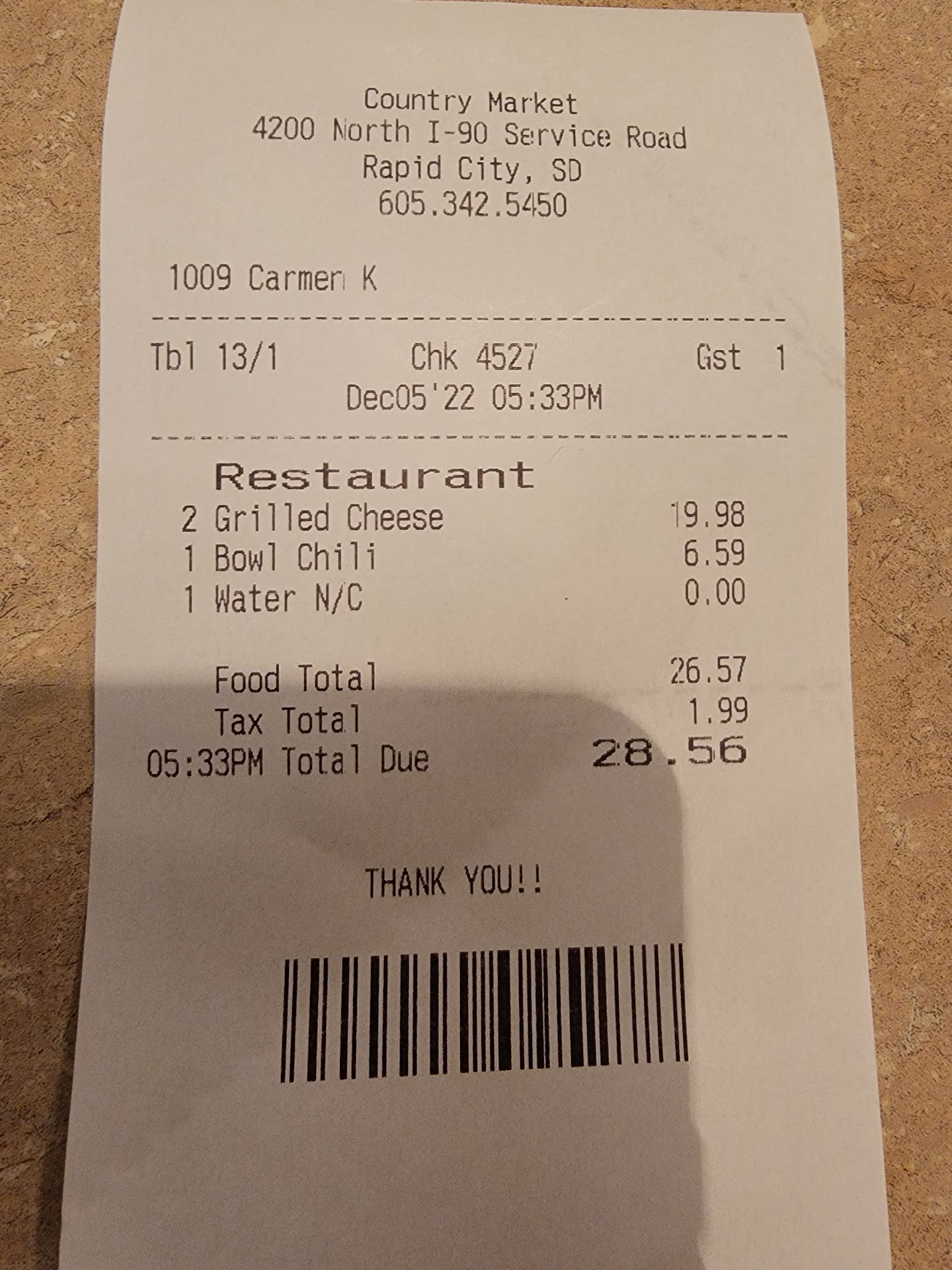 Best restaurant on Thanksgiving! I drove in from Wyoming hoping to make it there before they closed for Thanksgiving dinner. I got there about 10 minutes to 9, pretty much depressed because I thought I'd missed Thanksgiving dinner. I walked inside anyway and to my surprise the restaurant was still open, and the buffet was still open and in full service. They had plenty of turkey, cranberry sauce (with real berries), mashed potatoes, dressing, green bean salad, and all the other sides for a great Thanksgiving dinner. All of the servers were in a very cheery mood even though they had to work Thanksgiving night. I had approximately an hour left to eat, but enjoyed talking with the staff members and servers and the other local folks that were in there having dinner as well and had an absolutely great time. For this truck driver who happens to be away from home for a lot of the major holidays, these folks and this place made me feel very welcome and they pretty much were my family away from home. I know this is a late review but I finally got around to it. Thank you everyone at Country Market Restaurant, you all made my Thanksgiving last year! if I'm ever stuck out on the road during a major holiday and anywhere near this truck stop/restaurant again, I will definitely stop here and spend time with you good folks! You all were GREAT! I'd give ten stars if I could, and I WHOLEHEARTEDLY recommend this place to all drivers and road-trippers! Stop and be pleasantly...