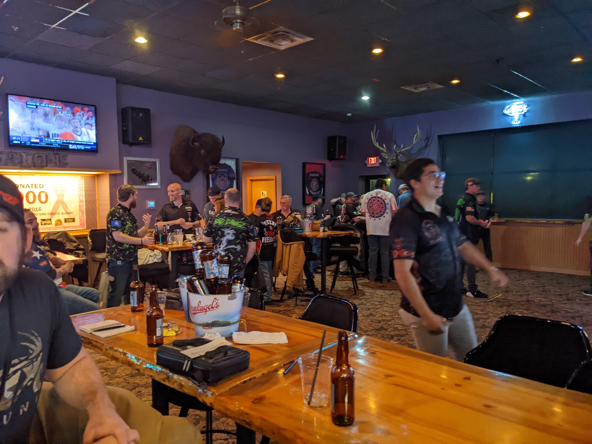 P.s we've been here before when there was two servers and that is not enough every table is full for over 3 hours also don't know why a lady that used to be a server now refuses to leave behind the bar when they get busy also just an FYI pictures were taken at the end of dart League where probably 30% of the crowd had...