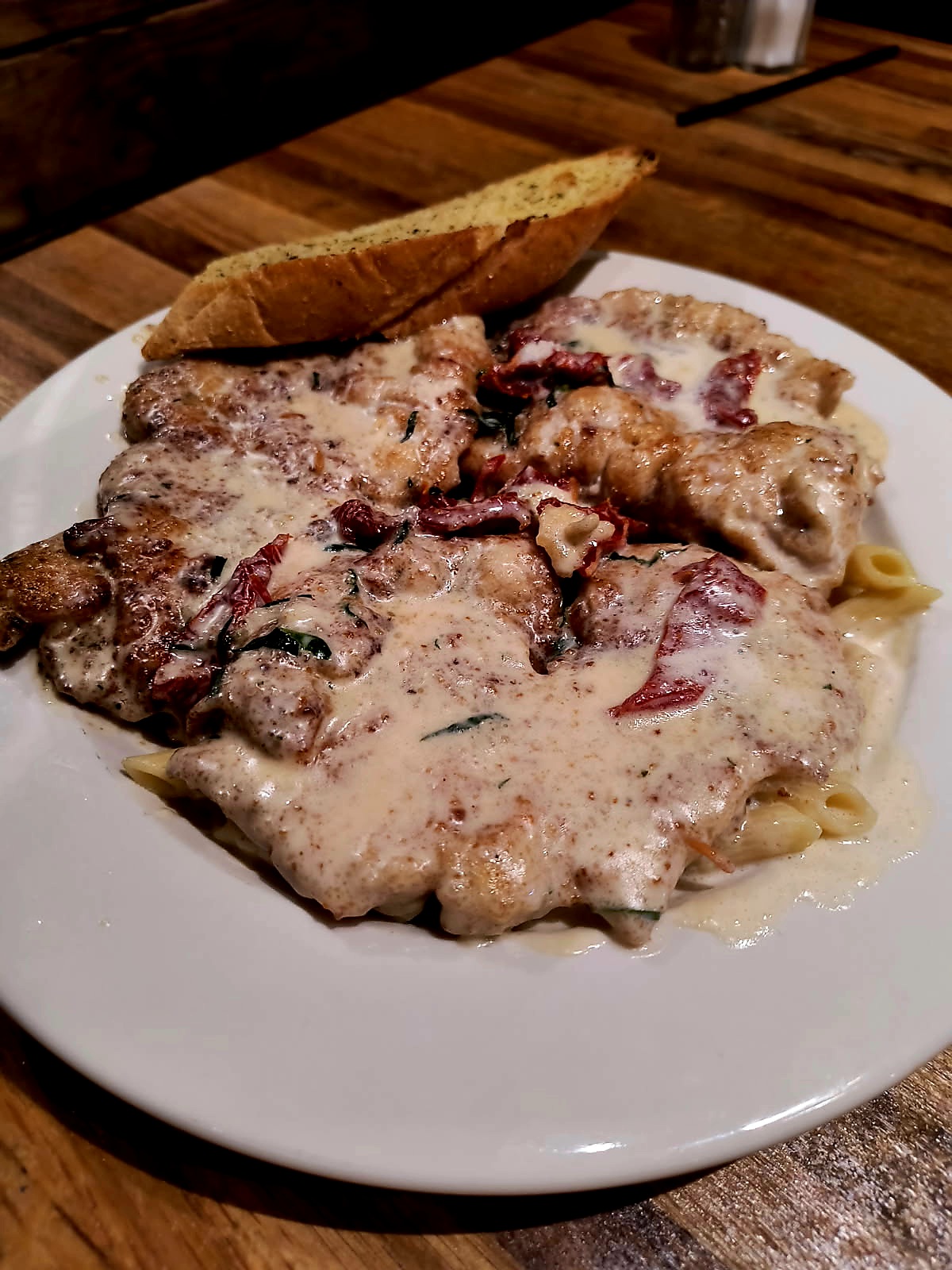 During my last visit had a Reuben & ordered the special 'Chicken Puntenesca' to go. They packed it very well, so no leaks. It was fantastic & huge - loaded with chicken, garlic, sun dried tomatoes, capers, olives, & pasta. Had it for dinner, enjoyed it for lunch & dinner the next day, and STILL had some left (which I enjoyed again, and even shared some, they agreed it was divine)!!! I hope they add this to their regular menu, if they haven't already (please)!